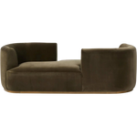 Featuring Deandra Surrey Olive Tete A Tete Chaise by Four Hands at Amethyst Home. Modern European inspiration and plush curves come head to head in this stylish chaise. Upholstered in a soft cotton/poly blend fabric that feels both casual and elevated. A base of Rosa Morada wood grounds the entire piece.Overall Dimensions: 90.50"w x 38.00"d x 29.00"hWeight : 1. Amethyst Home provides interior design, new home construction design consulting, vintage area rugs, and lighting in the Boston metro area.