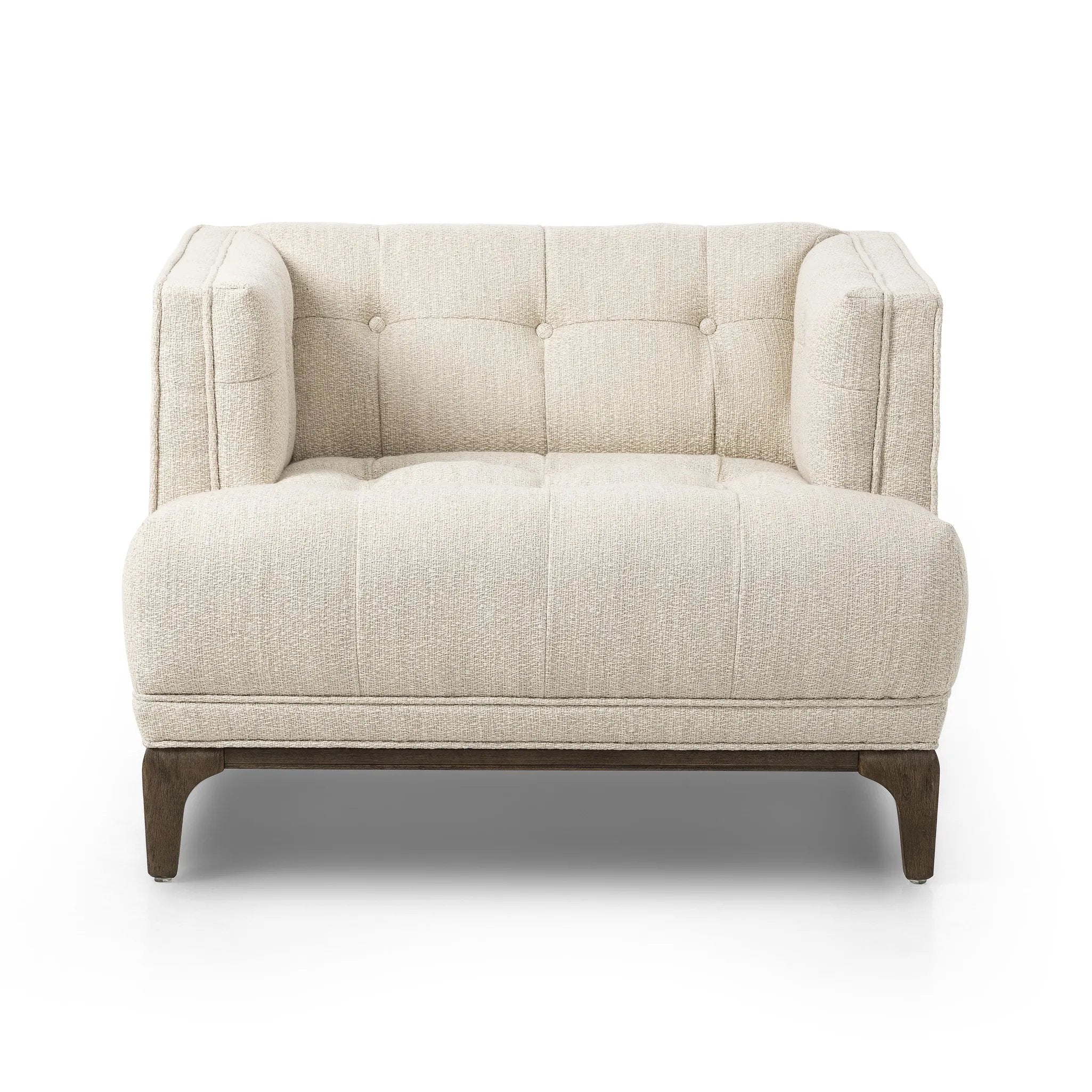 Featuring Dylan Kerbey Taupe Chair by Four Hands at Amethyst Home. Overall Dimensions: 34.75"w x 34.75"d x 25.25"hWeight : 57.54 lbsMaterials: 96% Polyester, 4% Acrylic, Solid Parawood. Amethyst Home provides interior design, new home construction design consulting, vintage area rugs, and lighting in the Newport Beach metro area.
