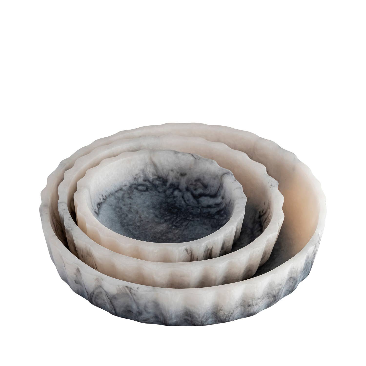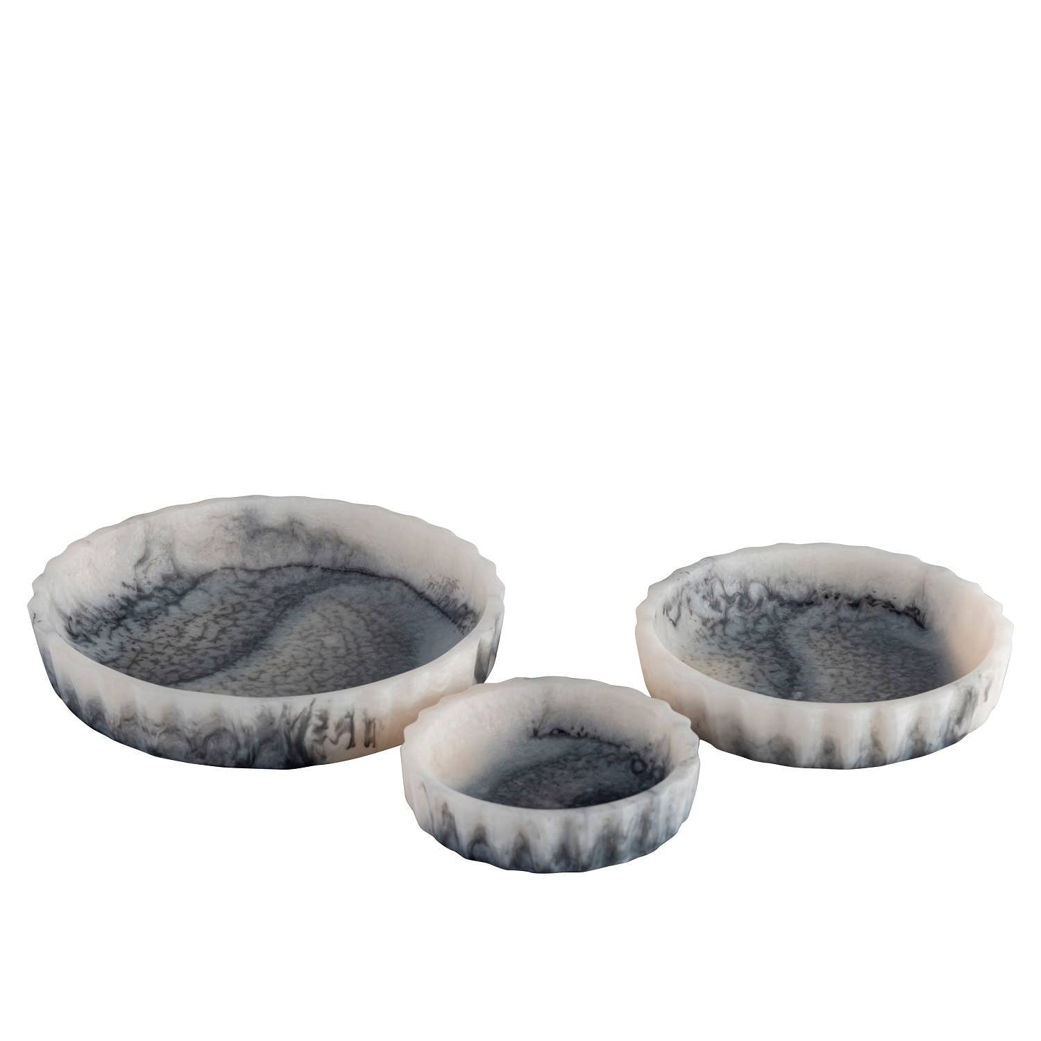This Curvy Edge Grey Bowl Set of 3 brings a modern, stylish touch to your dining table. Crafted from durable resin, each bowl features a smooth matte grey finish and unique curvy edges for an elegant look. Ideal for serving soups, salads, or desserts, the set offers versatile use for any occasion. The neutral grey tone and contemporary design make these bowls a timeless addition to your kitchenware.; Indoor Only; Water Safe: Yes; Food Safe: Yes; Dishwater Safe: No