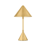 Characterized by clean lines and an all-metal construction, Salma is a modern geometric essential. The compact size of the floor lamp makes it ideal for smaller spaces, while the table lamp provides versatility as a portable light for desks and bedside tables. Both lamps feature a minimal, sleek design with an Aged Brass finish.