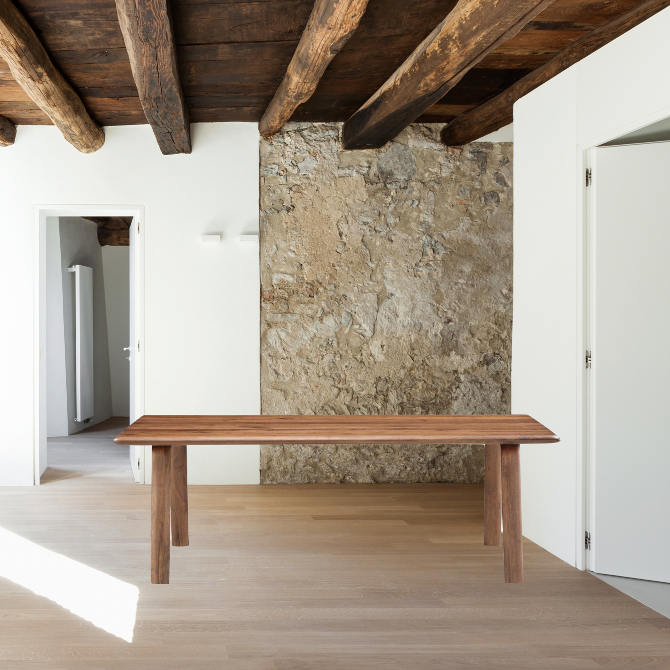 The Malibu dining table embodies an organic aesthetic through its design. Thick pieces of solid walnut is used from head to toe, showing off this pieces beautiful grain pattern and shades. The rounded edges on the legs and table-top creates a flow that is more contemporary and natural. With seating space for 10, the Malibu dining table can host the entire neighborhood.