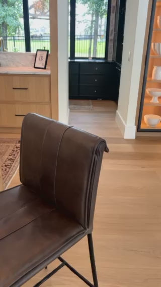 We the love the sleek look the top grain leather brings to this Mayer Bar + Counter Stool - Truffle Brown -- the perfect stool for any kitchen or bar area.