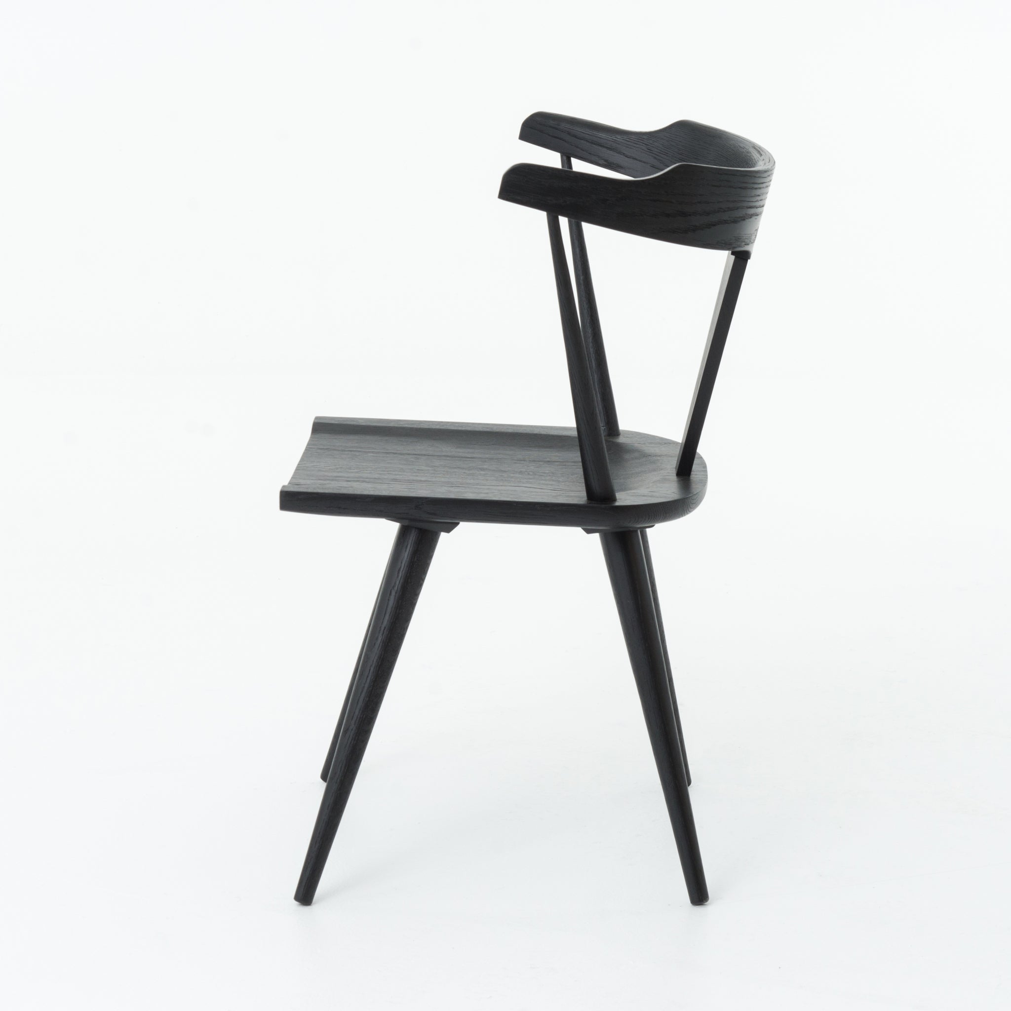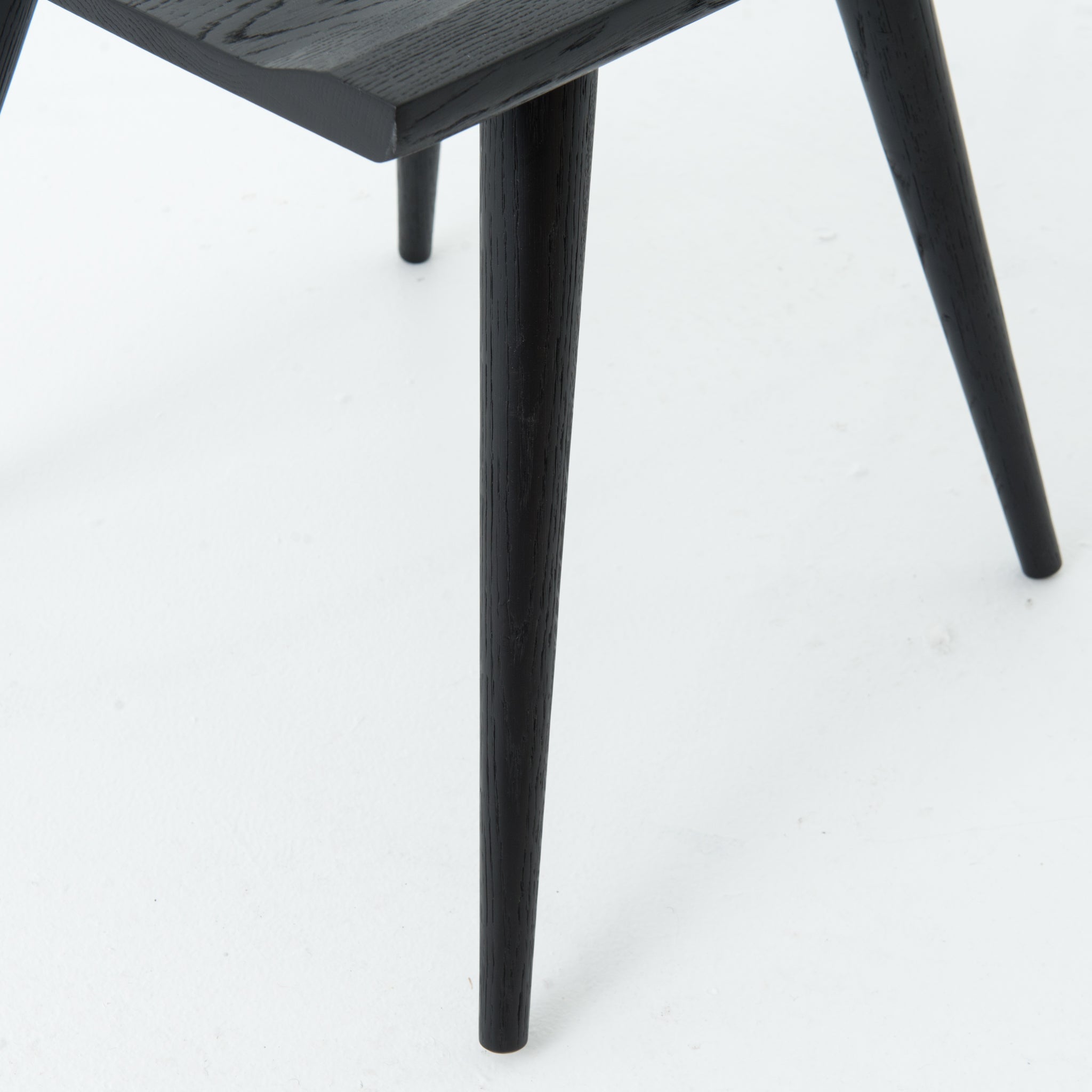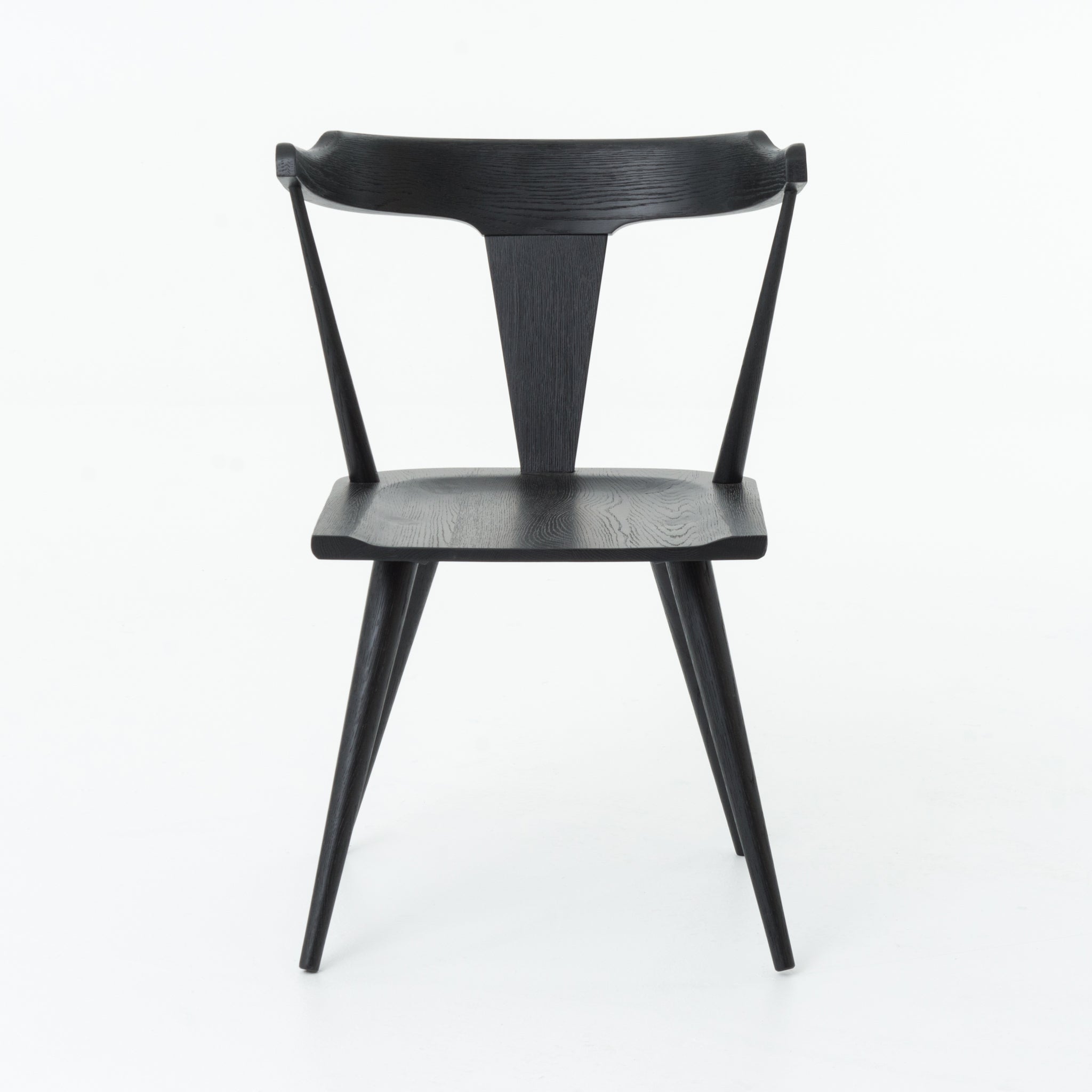 This new take on the mid-century Windsor chair, the Ripley Dining Chair has a bowed, sculptural silhouette. A soft black finish adds movement to the wood by highlighting the natural grain of weathered oak. The chair is perfect for the chic, modern dining room look or that special nook in your home.