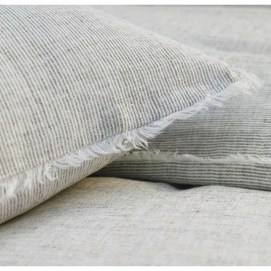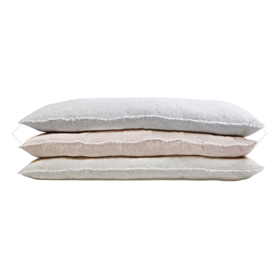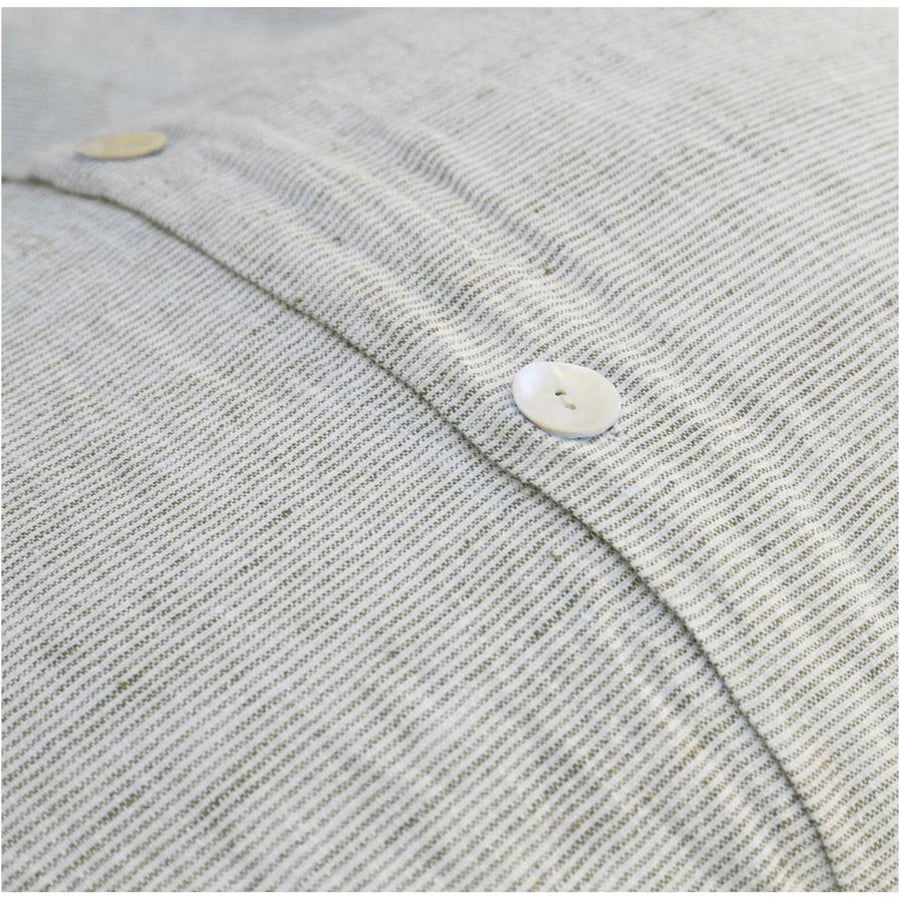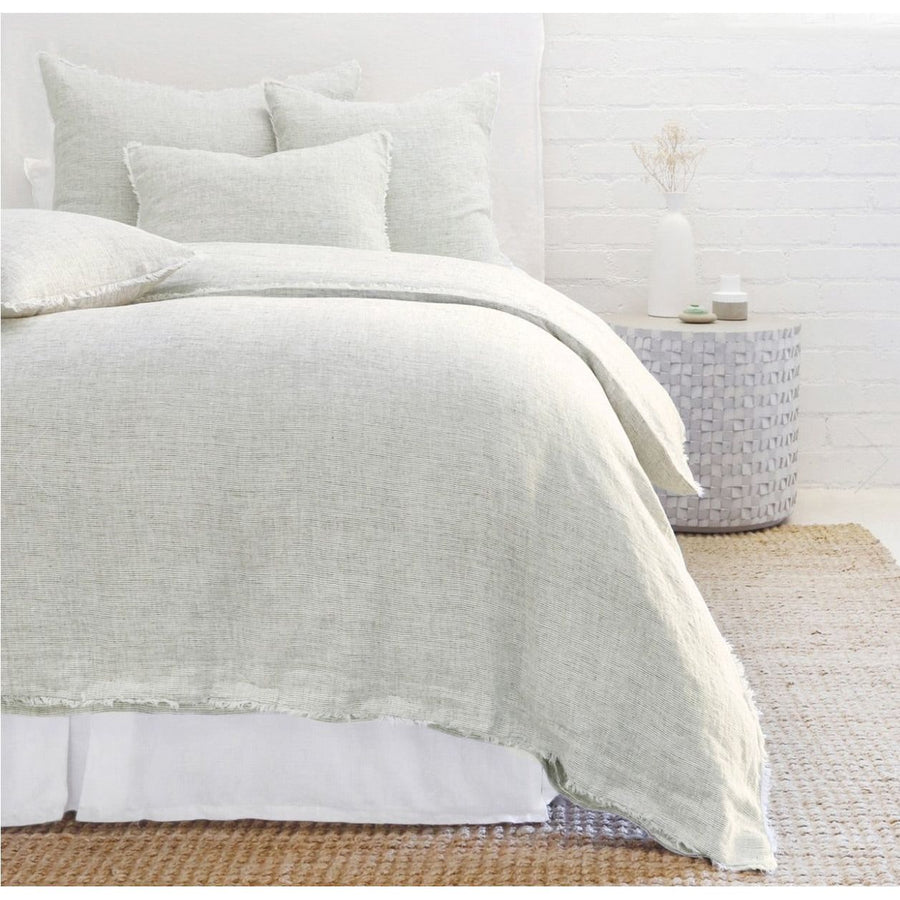 Subtle frayed edges of soft linen add a dash of unexpected detail to this Logan Duvet Collection Olive through Pom Pom at Home. Woven with two different colored yarns for a heathered effect, the duvet cover and shams feature shell button closures.