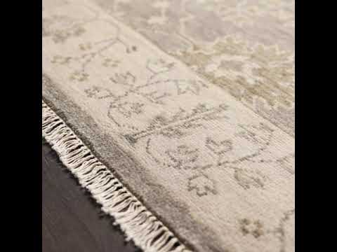Inspired by traditional Oushak textiles, this elegant hand-knotted wool rug offers a timeless aesthetic to modern homes. A fresh and muted gray color palette lightens spaces, while the intricate floral pattern and border detail embraces a classic look.