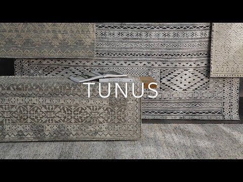 The Tunus Silver Rug features a globally inspired design made from New Zealand wool and viscose. The hand-knotted rug adds wabi sabi charm to any room.