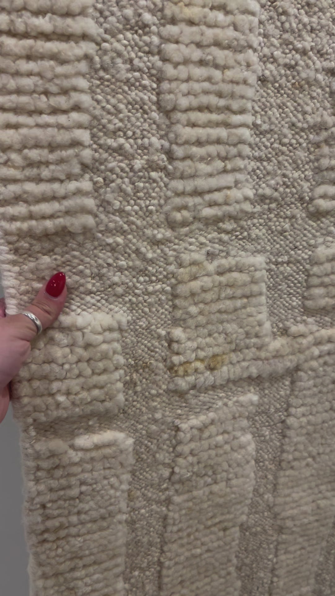 The Keoka Timandras boasts a fresh take on classic Afghani hand-knotted textiles. In the easy-to-decorate colorway of cream, the light and airy Timandra rug anchors rooms with versatility and neutral appeal. The texture-rich wool pile features a ribbed, high-low construction that lends unique linear details to the dynamic geometric patterns. The natural, undyed wool works well in high and low traffic areas of the home.