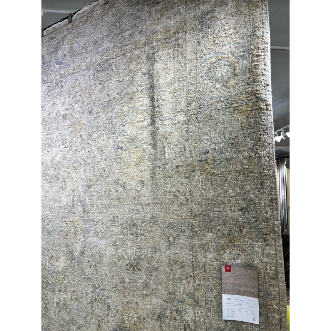 Featuring Legacy Ash/Lagoon Hand-Knotted Rug by Loloi at Amethyst Home. The Legacy Ash/Lagoon rug from Loloi is hand-knotted, refined, yet versatile for any home. The Legacy rug is deliberately distressed and sheared down to an extra low pile of 100% wool, creating a patina usually only imparted through decades of wear.