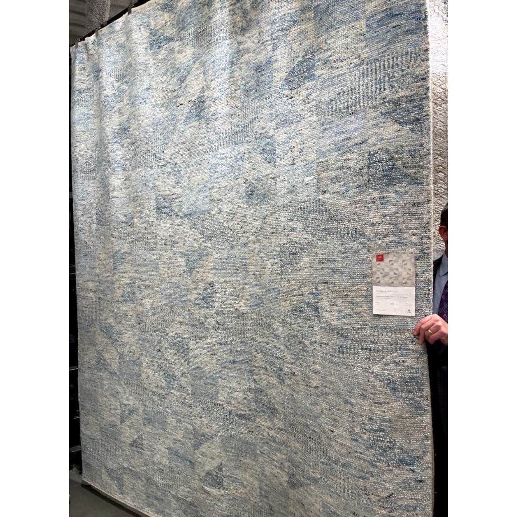 Drawing inspiration from tribal influences, the Tribeca Light Blue Area Rug combines relaxed linear pattern with a sophisticated color palette. Each Tribeca area rug, which is hand knotted of wool, viscose, and cotton, is crafted entirely by hand by master artisans in India.