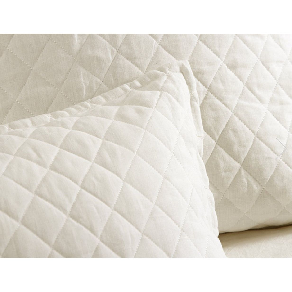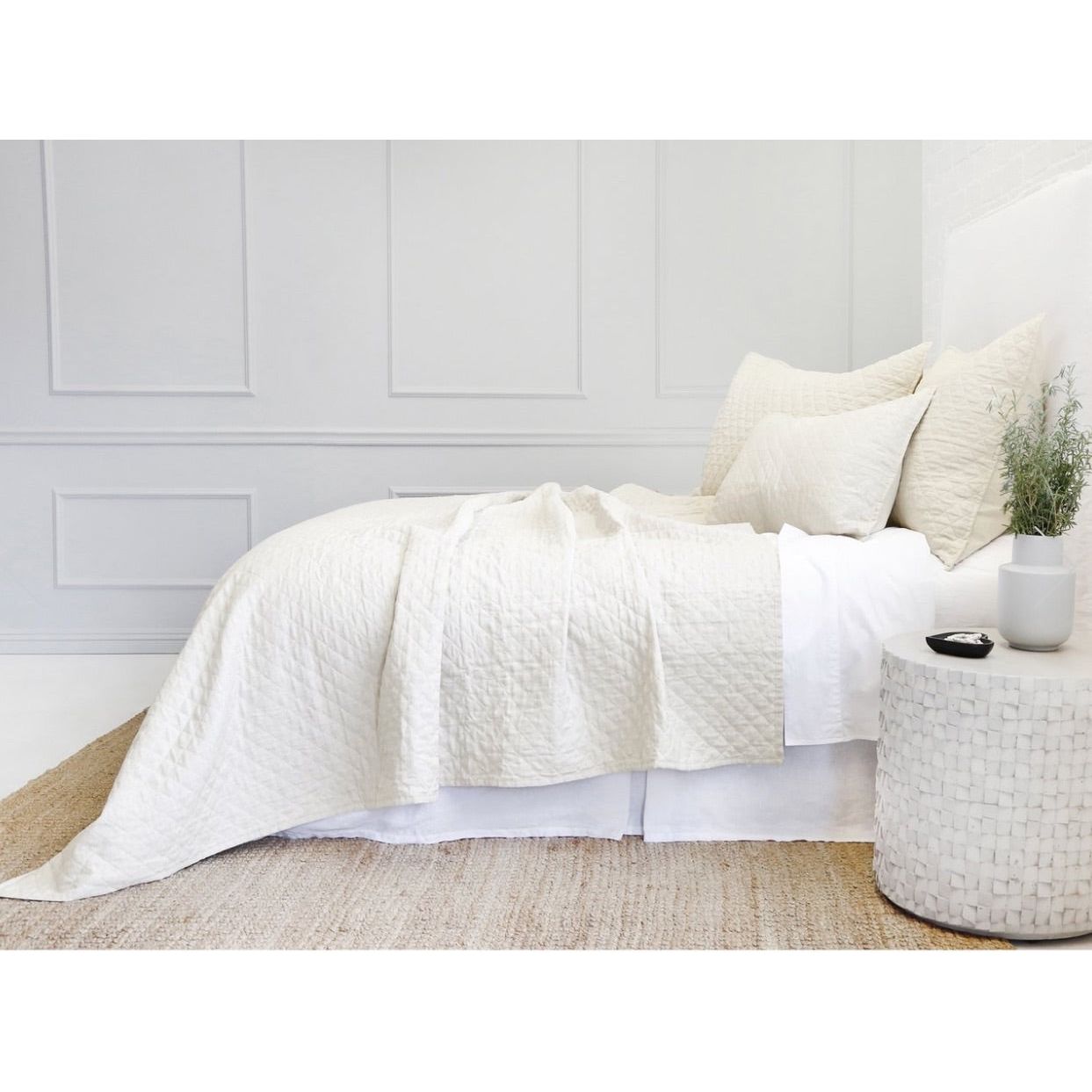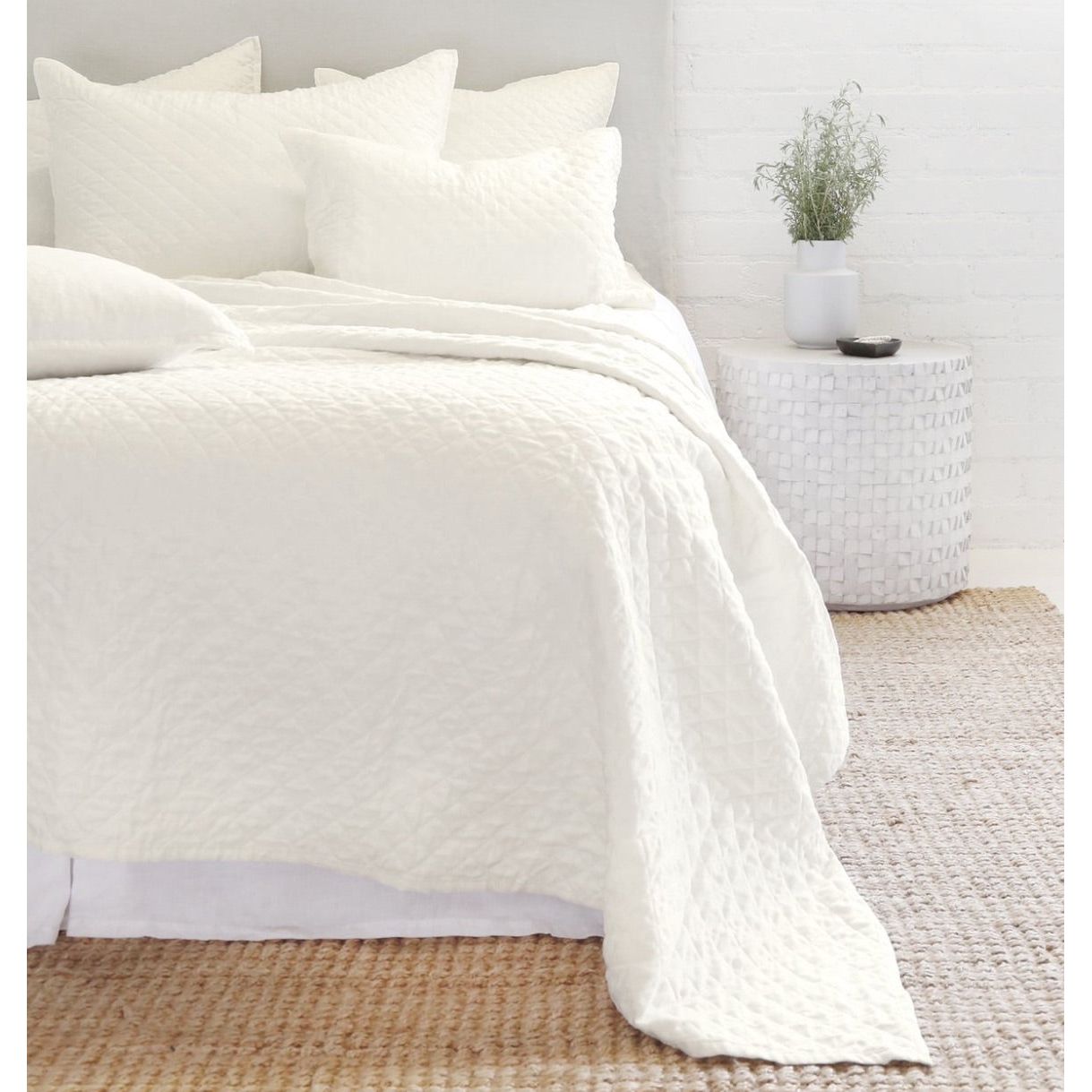 A timeless classic, the Hampton Coverlet Collection - Cream by Pom Pom at Home is a luxurious diamond quilted coverlet made of washed linen. It is finished with a 1/2" flange and straight corners.