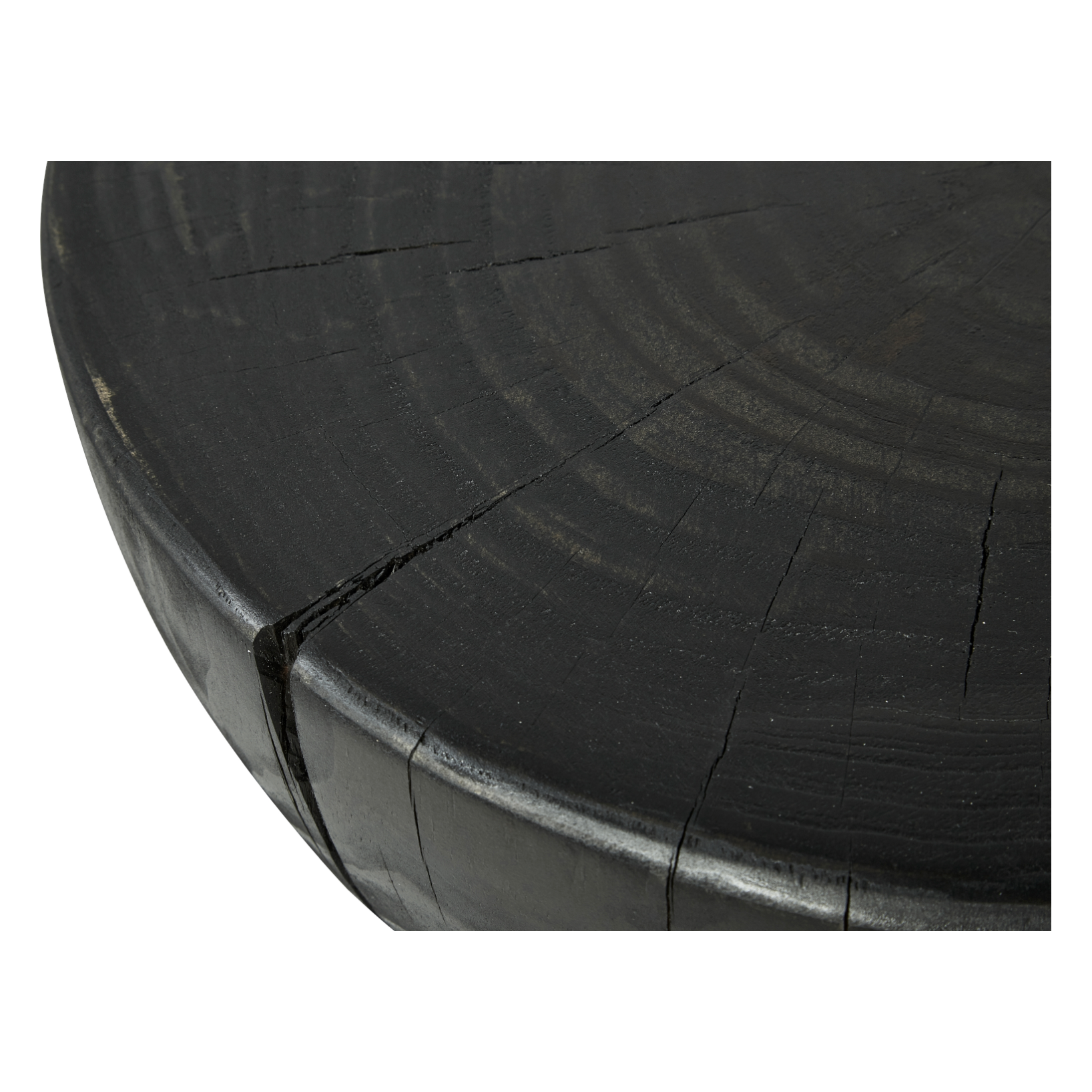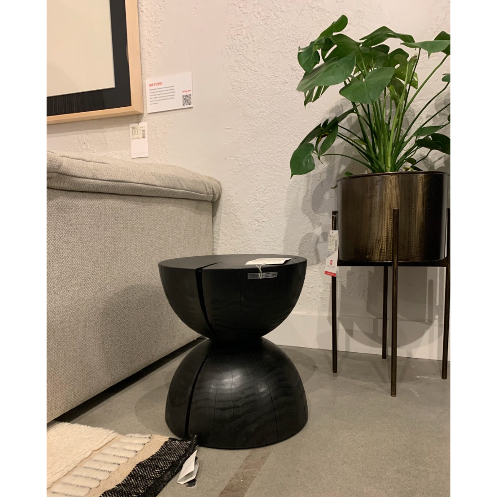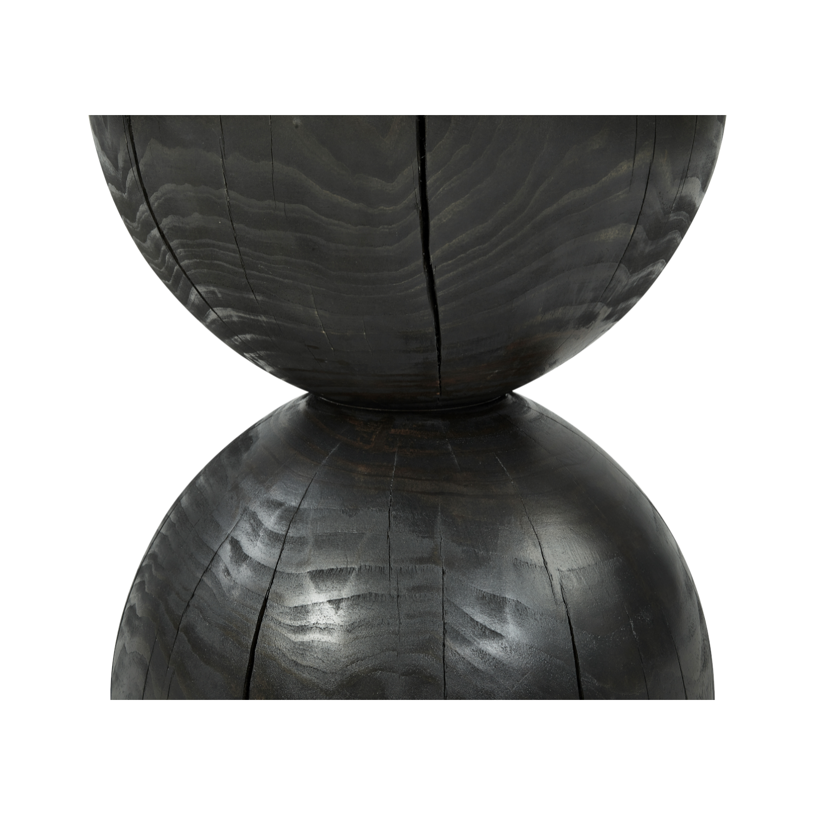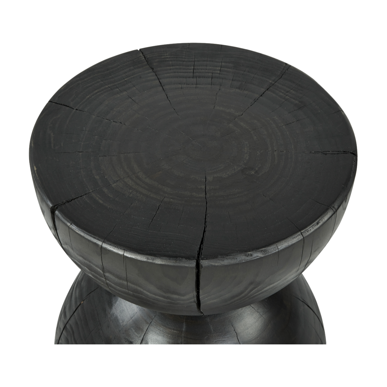 Solid black-finished pine sculpts an hourglass silhouette for an organic look with this Aliza End Table. Makes for a handy extra surface solo or paired! Due to materials' natural essence, cracks are to be expected and may develop over time. Knots, color variance and stain will vary from piece to piece - no two are alike.