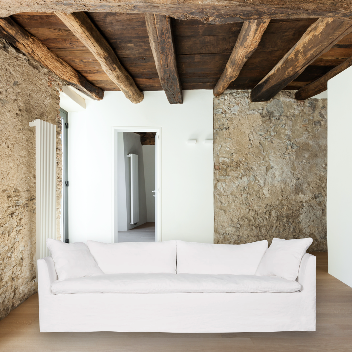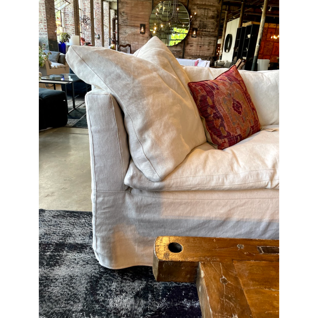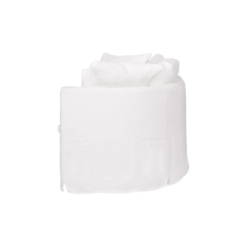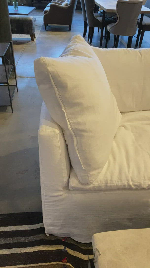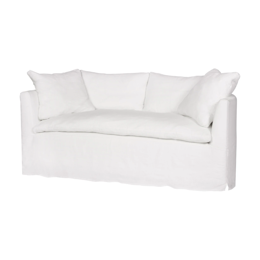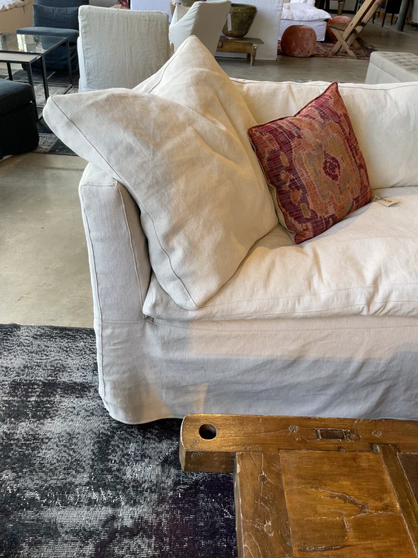 This cozy Havana Sofa from Cisco Brothers is a wonderful addition to any room. The sofa features a gorgeous rounded frame with a slight taper to the front. This was instant swoon when we saw this at market. As shown slipcovered in Mariet White 100% linen fabric.