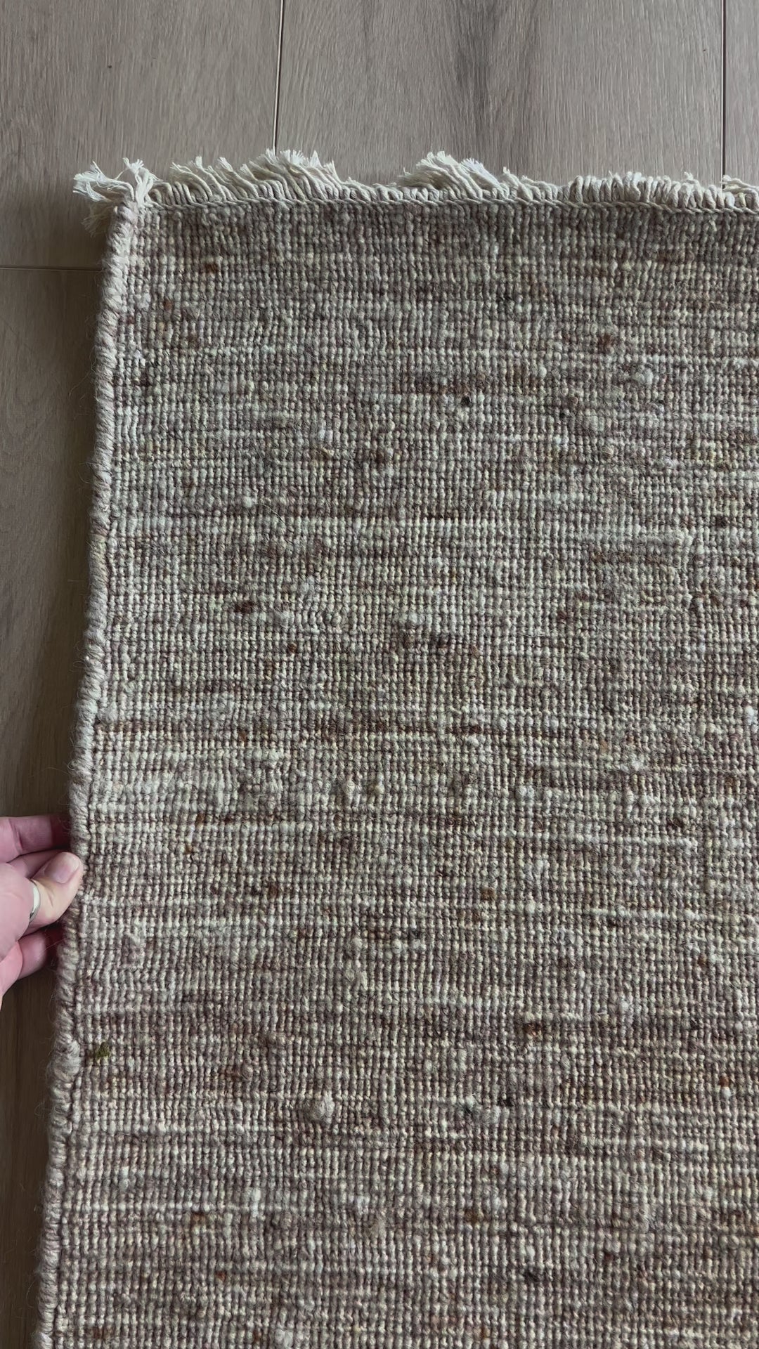 A modern, heathered warm beige look.  One of our favorite layering rugs. This is a great rug if you have other dominant design features in a space like a striking fireplace or standout patterns.