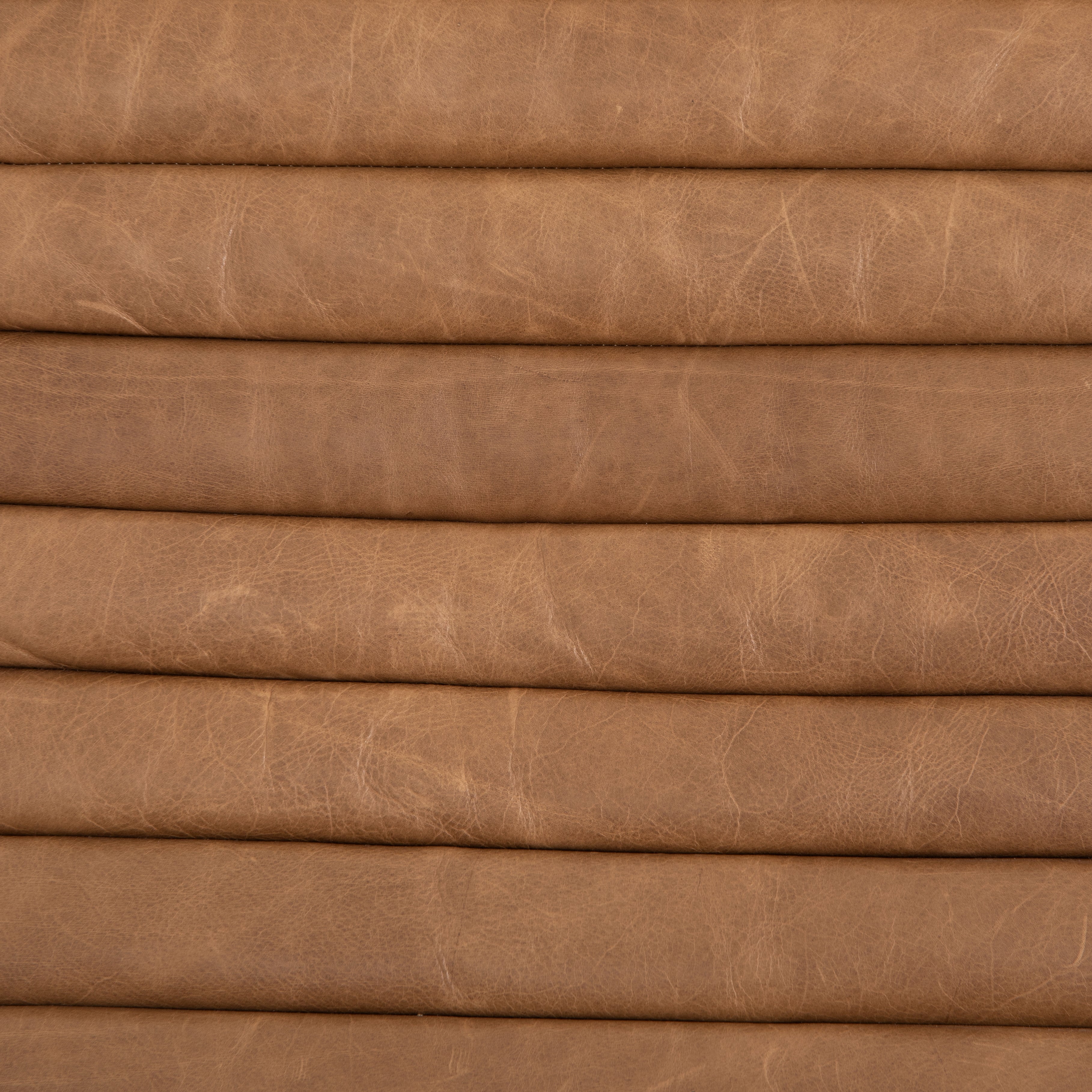 Featuring Chance Warm Taupe Dakota Leather Recliner by Four Hands at Amethyst Home. The Chance Recliner has an invitingly curved seat with dramatic horizontal channels is covered in soft, camel-colored top-grain leather. Rich, tonal frame captures alluring negative—and positive—spaces. A push recliner takes this forward-thinking lounger to the next level.