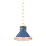 The Highclere family blends industrial and classic elements to create a modern, elevated basic. Etched for added texture, the clear optic glass shade creates a beautiful diffusion of light while the bell-shaped silhouette of the shade is accented by Mark D. Sikes' signature brass screw detailing. Highclere is available as a small and large flush mount and a small and large pendant. The three finish options include Aged Brass, Aged Brass and Off-White, and Aged Brass and Soft French Blue.
