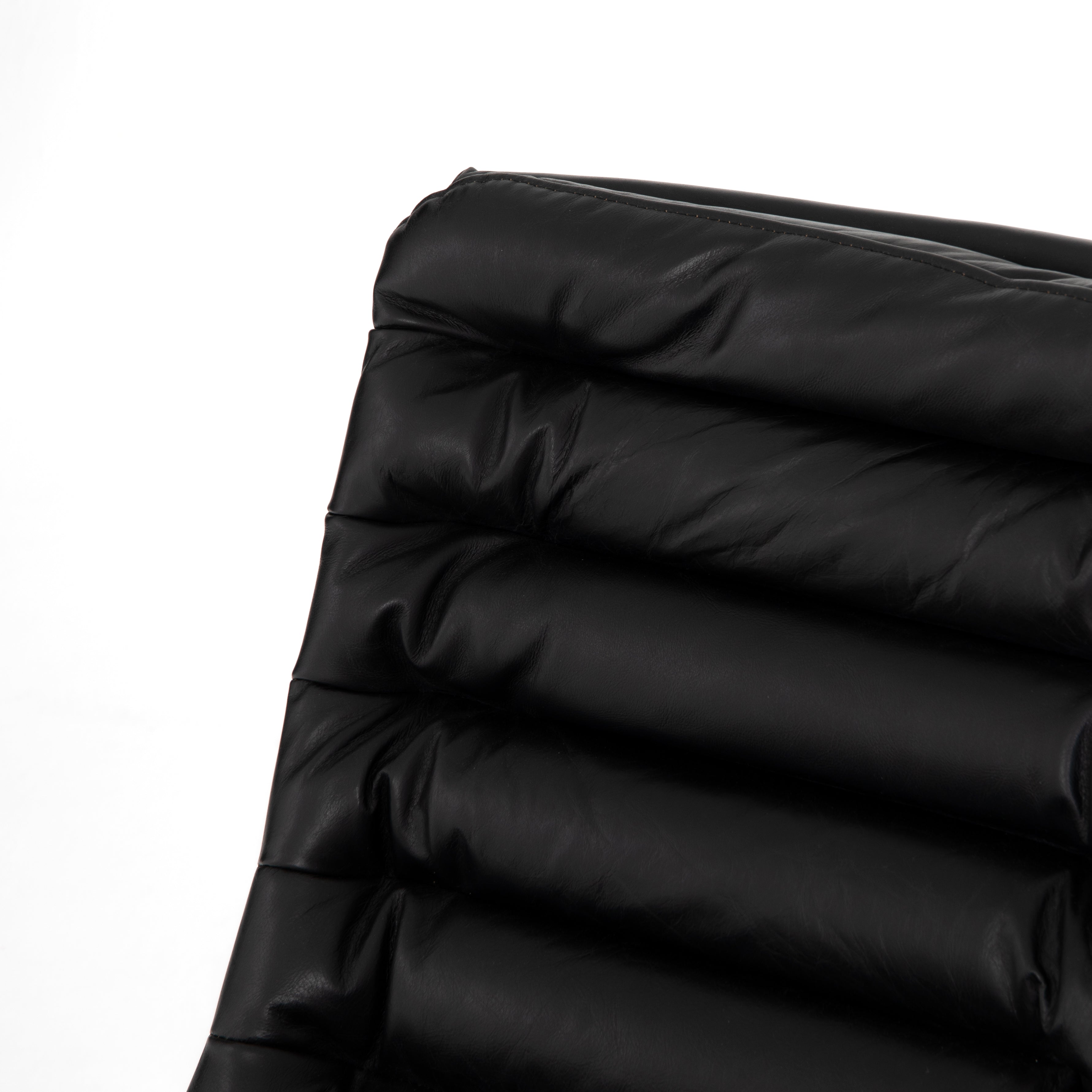 Paired back and fashion-forward, this minimalist Malibu Desk Chair in black top-grain leather offers maximum comfort. Inspired by workspaces of the ‘50s and ‘60s. Stainless steel casters make for stylish ease in the workplace. Height not adjustable.