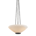 The traditional silhouette of the Awosting pendant receives a fashionable update with jewelry-inspired details. Blown from opal matte glass, the shade’s softened edges evoke a sense of calm, organic beauty. As light passes through the oculus, the lace-like metalwork becomes more noticeable. At the top, a trio of delicate vintage-inspired chains supports the shade. Awosting is available in two sizes and two finishes, Aged Brass and Dark Bronze.