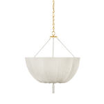 The Carolina pendant explores proportion and materiality with quiet confidence. The generous, soft form of the raw silk is eye-catching and special as it overlays a clear etched glass shade. The wrapped rods and matching tassel further add to the striking, airy material story. Accented by Aged Brass hardware, Carolina’s warm, luxurious presence makes for a dreamy piece in dining areas and bedrooms.