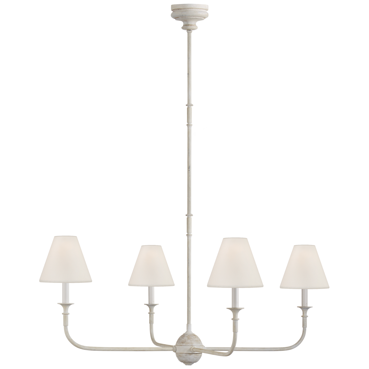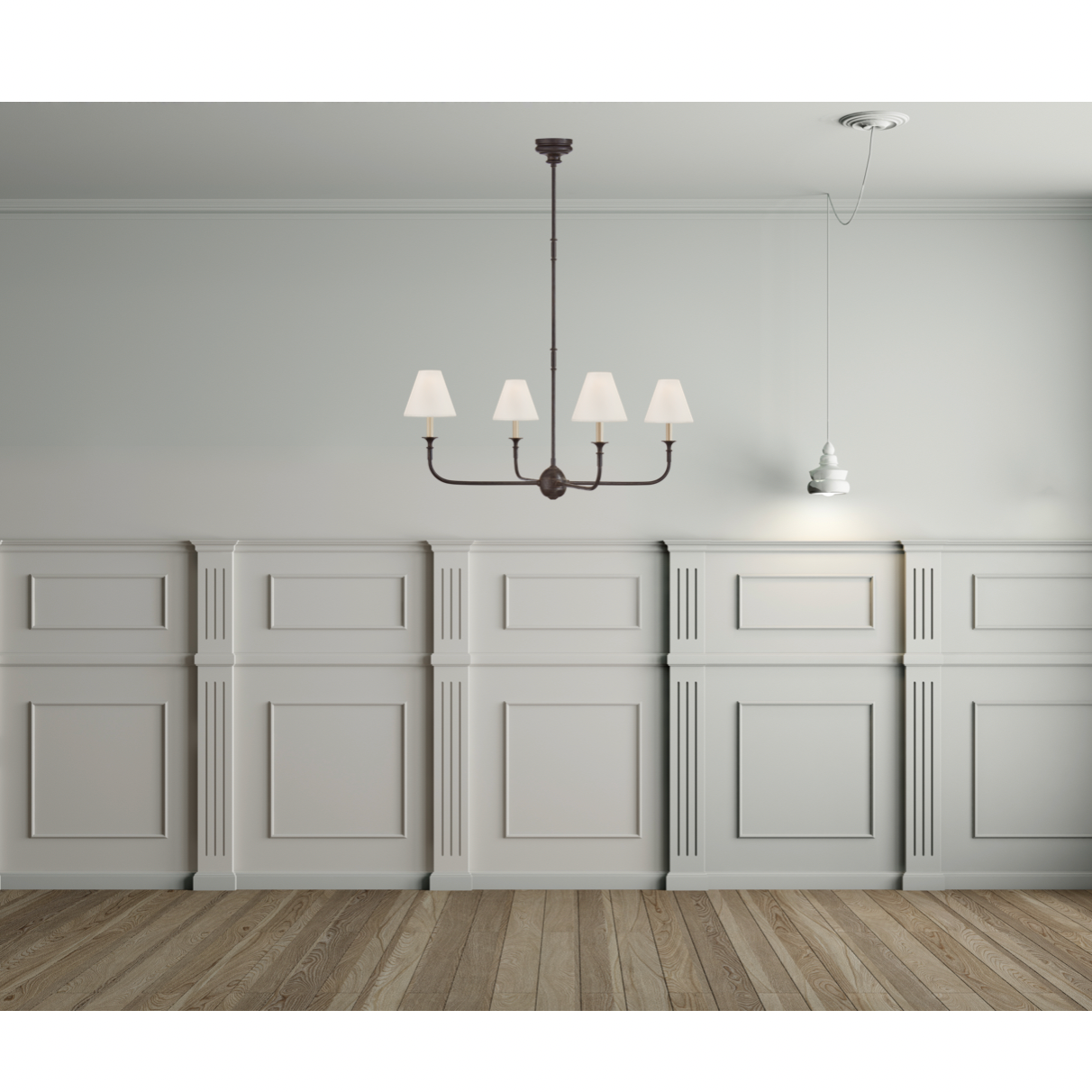 We love the thin arms of this Piaf Large Chandelier from Visual Comfort.  The linen shades brings a warm, classic look to any dining room, living room, or other large space.