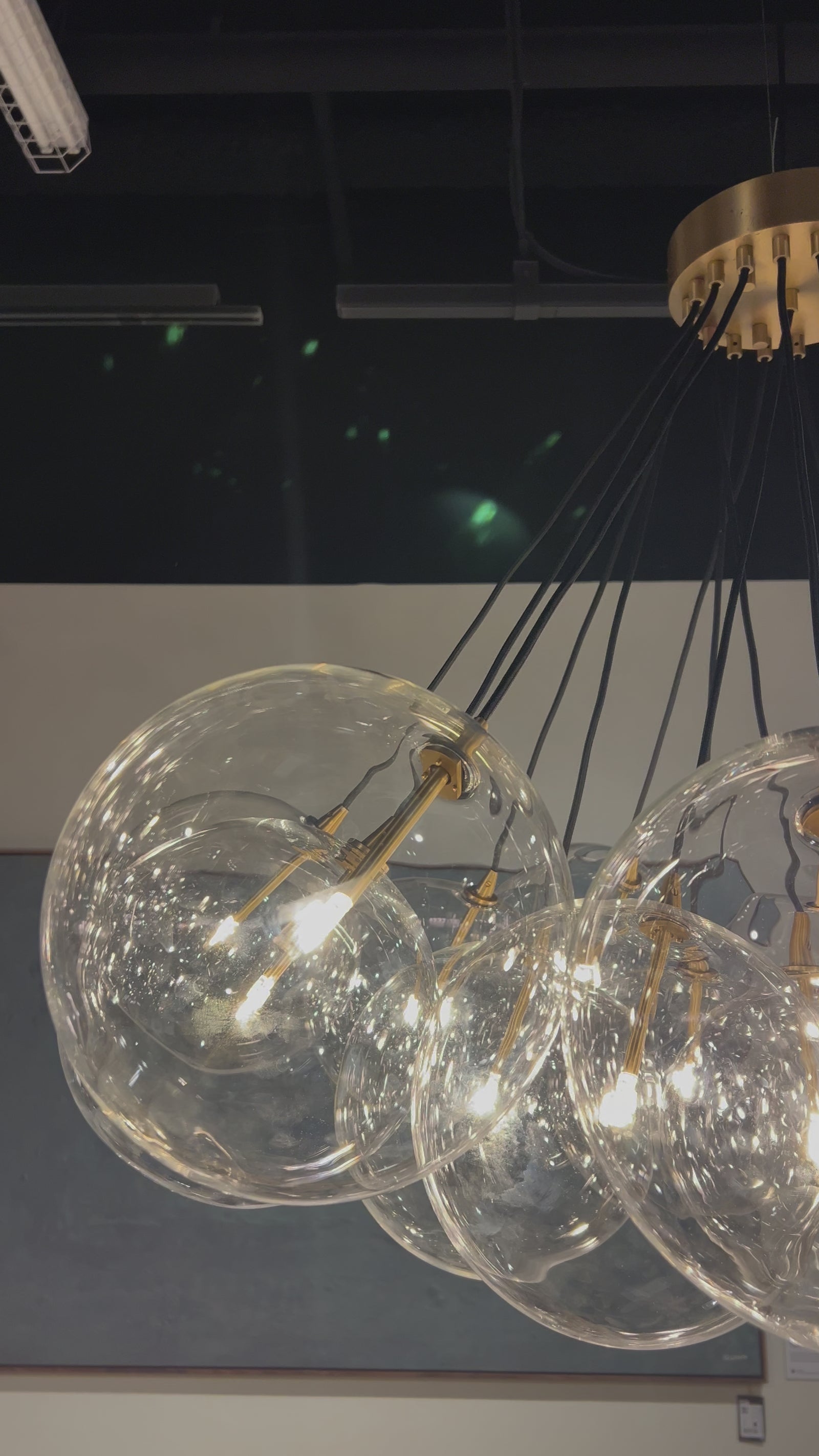 Glass Burnished Brass Clear Glass Globe Large Pendant