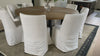 Featuring Craig Dining Chair by Dovetail at Amethyst Home. The Craig Dining Chair is featured in a gorgeous white linen slip cover in a Belgian wrinkle. The chair is comfortable, chic, and easy to care and maintain.