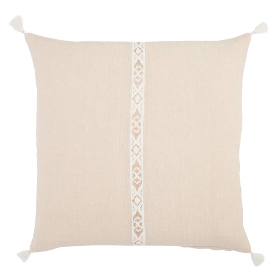 Featuring Joya Pillow by Jaipur Living at Amethyst Home. The Joya Pillow has cute tassels found on all four corners with a cute, detail stripe found in the middle. Place on your bed or sofa, this rose dust colored pillow will bring the whole room some texture and pop of color. Insert is made with 100% down.