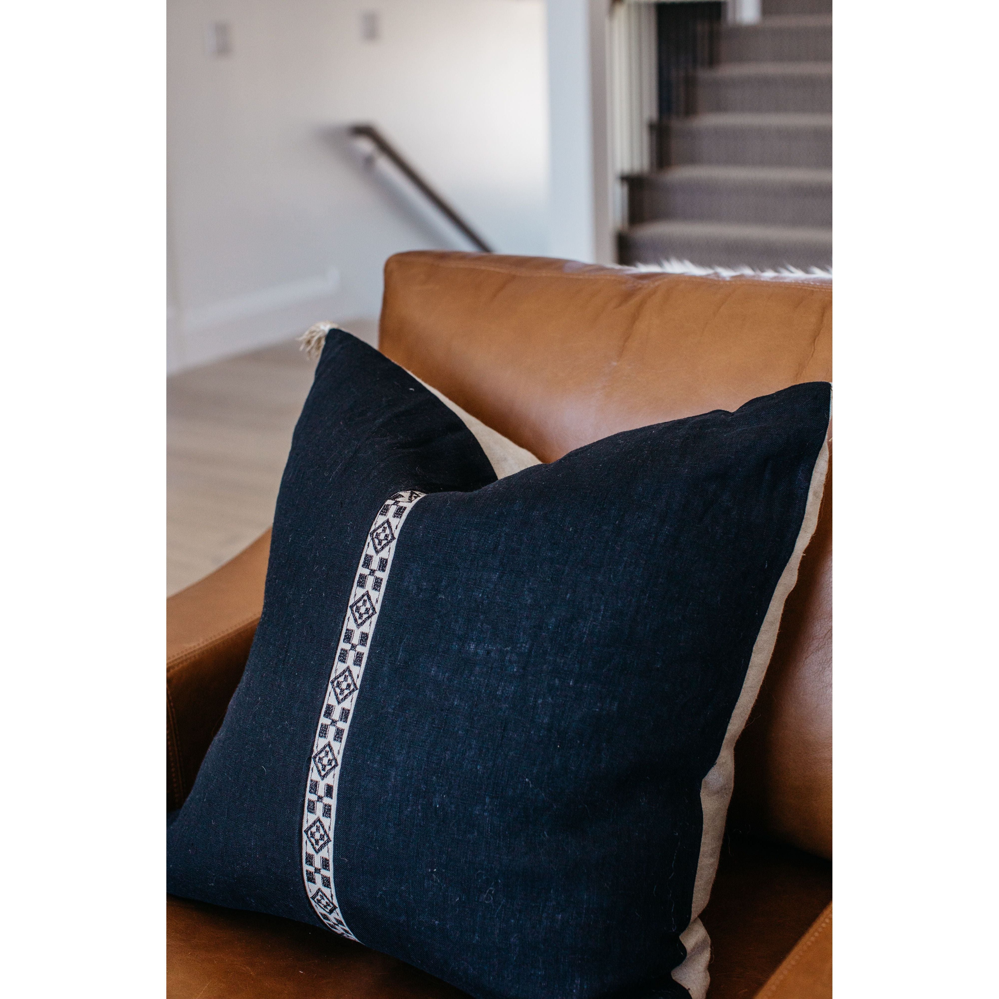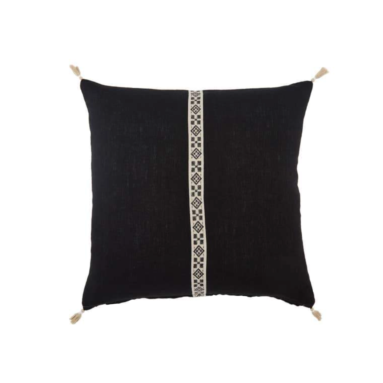 Featuring Taiga Sila Licorice Pillow by Jaipur Living at Amethyst Home. Sophisticated simplicity defines the texturally inspiring Taiga collection. Crafted of soft linen, viscose, and cotton, the Sila pillow boasts a mix of pattern-rich and embroidered details. Deep black and tan tones lend a bold yet versatile complement to any space.