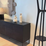 As lovers of natural style at Amethyst, we love the warm modern inspired Grooves Sideboard Teak Black . This item pairs well with other brands such as Surya and is perfect for modern homes.