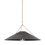 With its exposed metalwork, chain detailing, and unique finish combination, Arcane has an elevated, industrial vibe. The graphite shade feels chic and gives off a warm glow. The Patina Brass hardware, chain, and canopy add a hint of shine that plays wonderfully off the graphite. The twisted black fabric cord is a subtle detail that gives the pendant a vintage feel. Part of our Lauren Liess collection.