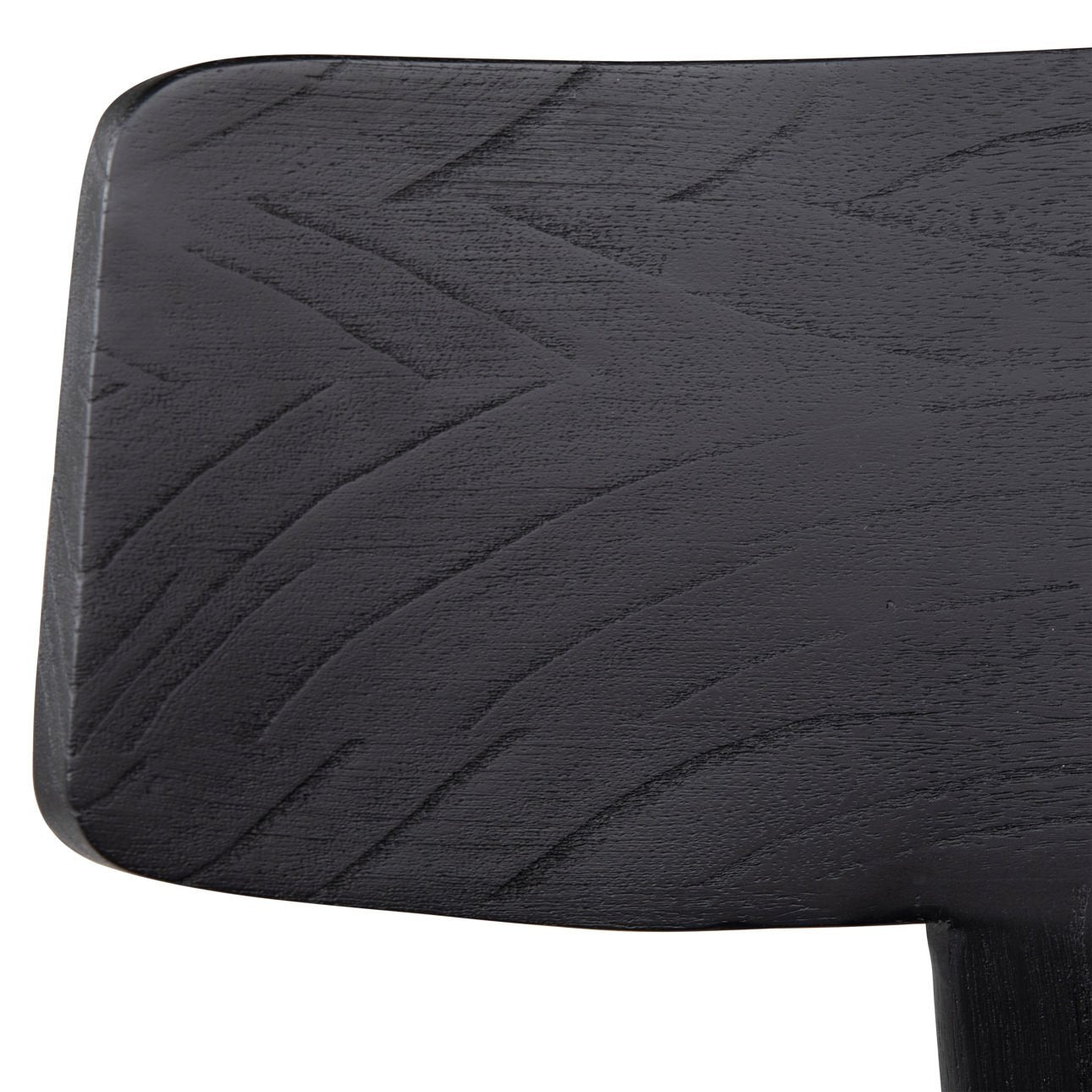 Experience a fresh perspective on modern and contemporary chair styles with our hand-crafted Arteaga Dining Chair, featuring a sculptural silhouette. Made of high-quality mindi wood in a captivating raven-black finish. It rests upon a distinctive three-legged base, making a bold statement in any space with its unique design.​