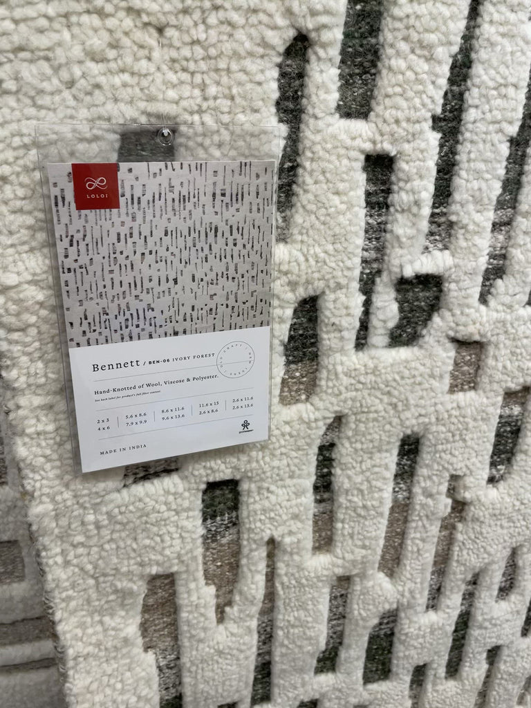 Featuring Bennett Ivory / Charcoal Hand-Knotted Rug by Loloi at Amethyst Home. Dimensional yet soft, the Bennett Ivory / Charcoal Area Rug is hand-knotted of wool, viscose and polyester in India. Featuring a new carve like high-low pile, Bennett has an ivory base with abstract tonal designs. Plus, it's plush underfoot -- a great choice for your office, bedr.  Amethyst Home provides interior design, new home construction design consulting, vintage area rugs, and lighting in the Monterey metro area.