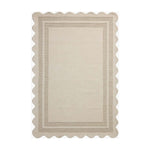 The Scottie Collection from Chris Loves Julia x Loloi is a hand-tufted wool area rug with a playful scalloped edge and lower-pile, striped border for a touch of structure. The rugs overall pile is thick and plush, available in easygoing earth tones and neutral colorways. This collection is hand-tufted of 100% wool in India and Goodweave-certified, ensuring our commitment to ethical production and the support of weavers communities. Some shedding is expected and a natural characteristic of wool rugs; we recommend vacuuming frequently without a beater bar.