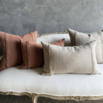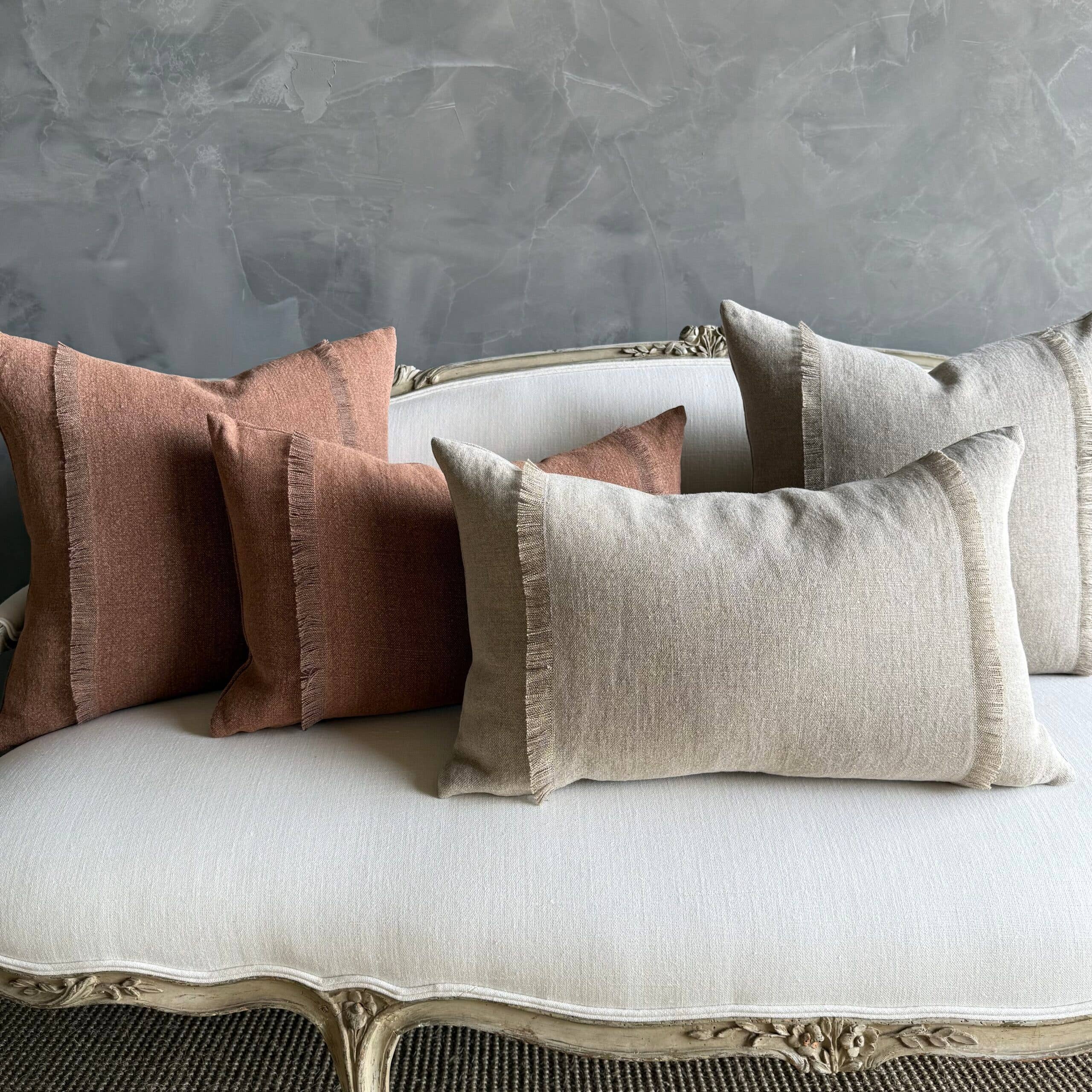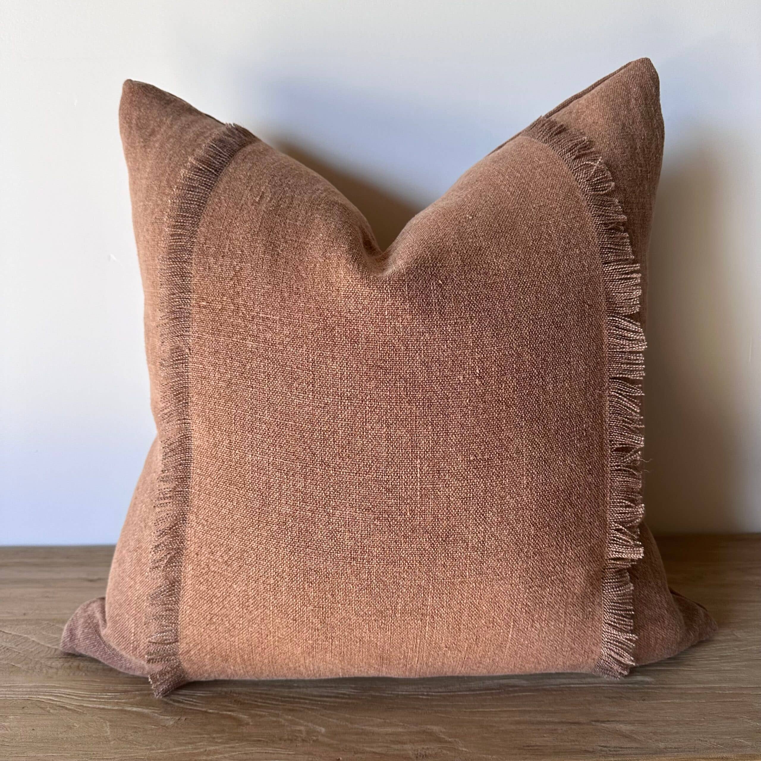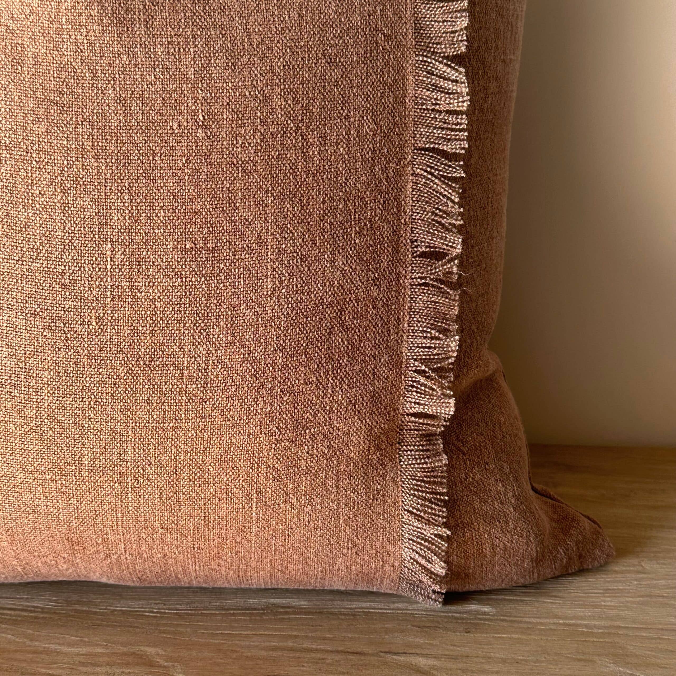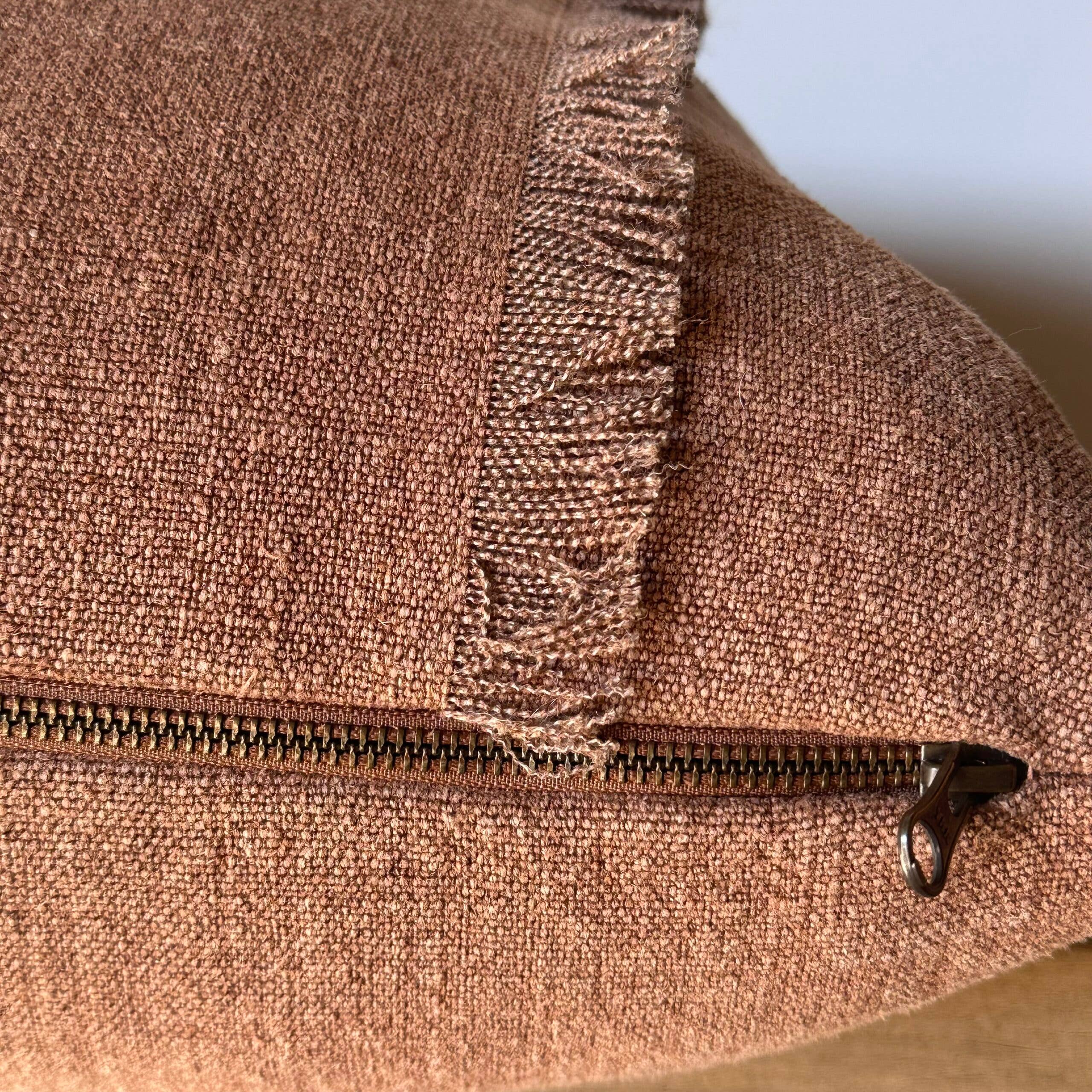 Sewn with a brass zipper closure and overlocked seams, this nubby linen textured pillow has a rust, brown tone. A perfect accent pillow to blend seamlessly into your decor.