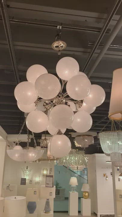 Featuring Cristol Large Chandelier by Visual Comfort at Amethyst Home. We love the white strie glass globes on this Cristol Large Chandelier by Visual Comfort. It brings a stunning and unique look to any living room, dining room, or kitchen.