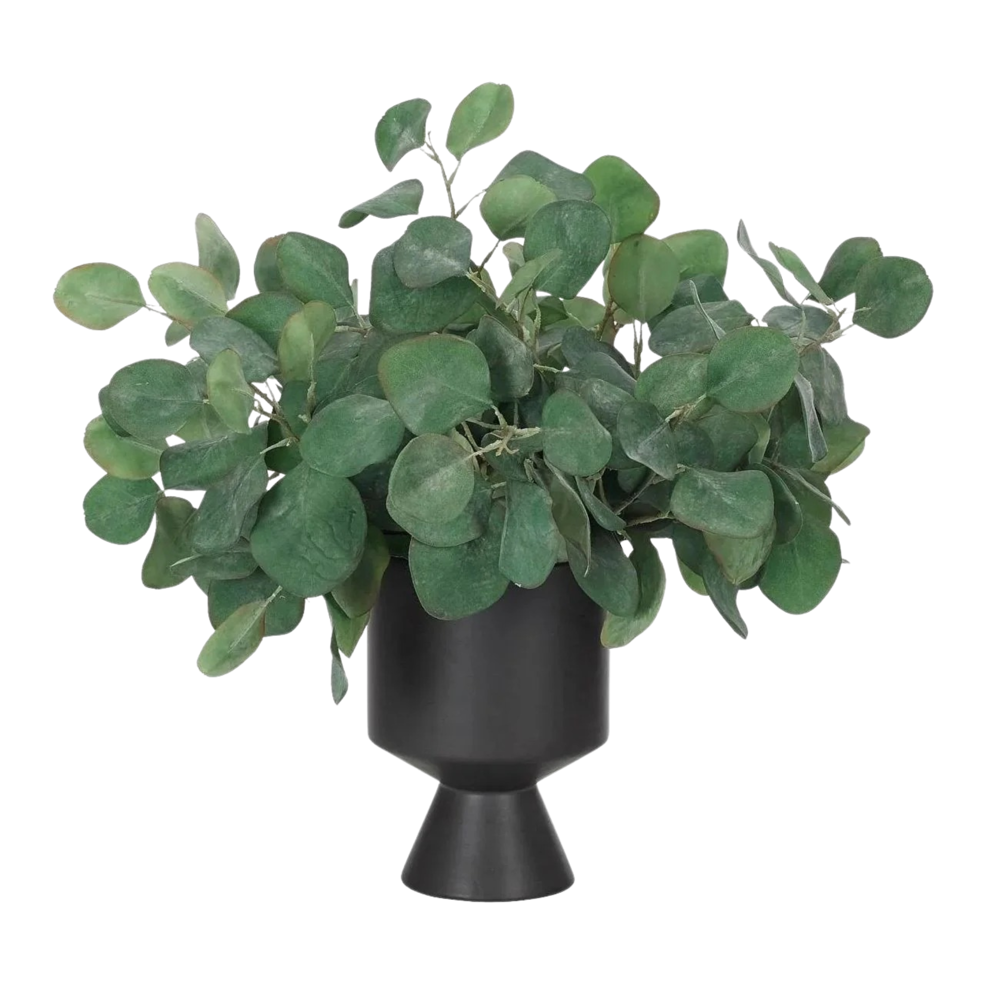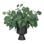 Bring timeless beauty into your home with the green Eucalyptus in a footed vase. At 17", this piece captures the natural beauty of each petal, making it ideal for brightening up office desks or kitchen countertops. Admire the lifelike blooms and rich foliage, providing a timeless touch to your home's ambiance.