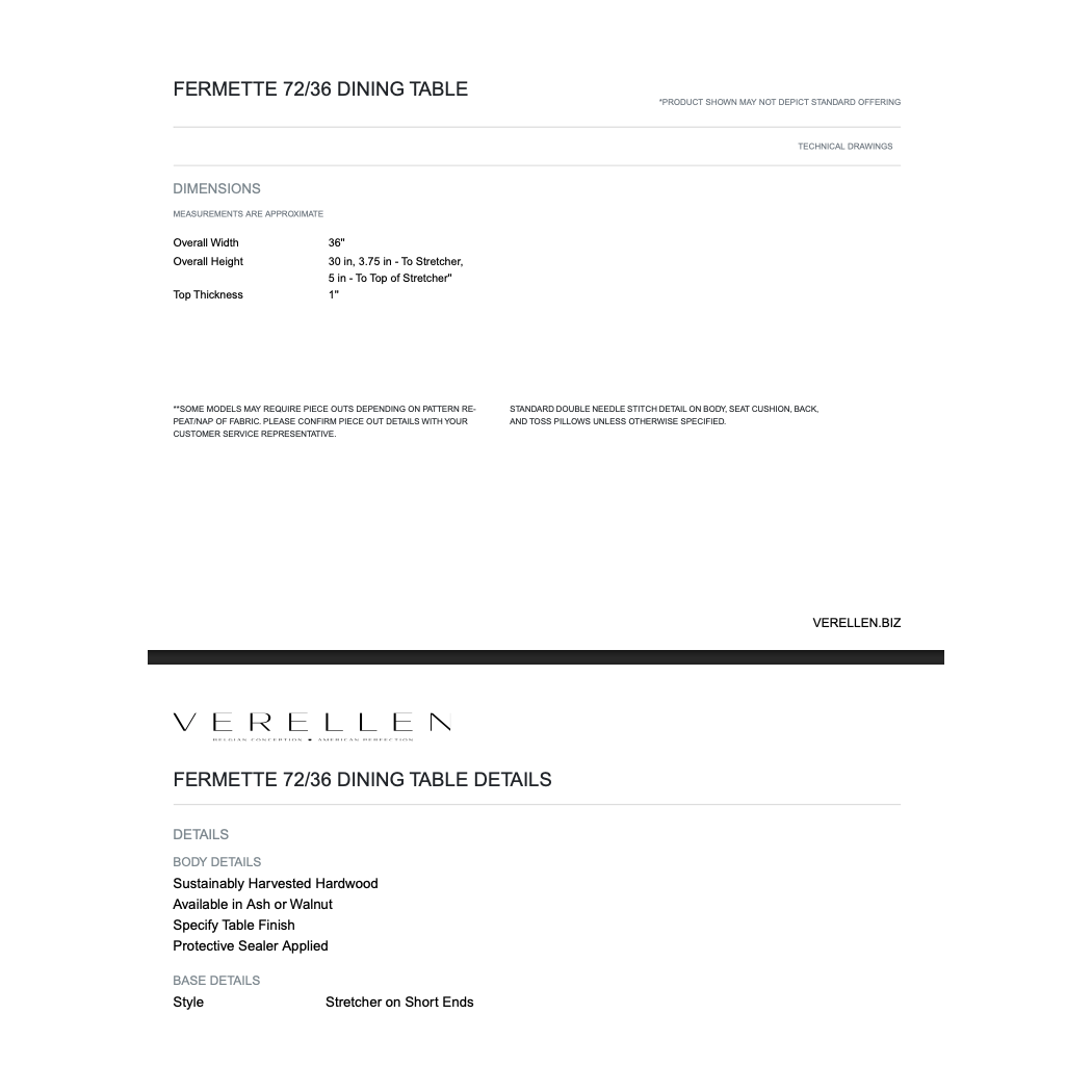 Fermette W/Stretchers 72/36 Dining Table By Verellen