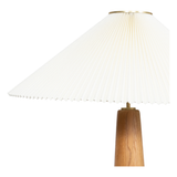 Modern minimal meets traditional. A tapered wood floor lamp base is topped with a design-forward pleated shade.