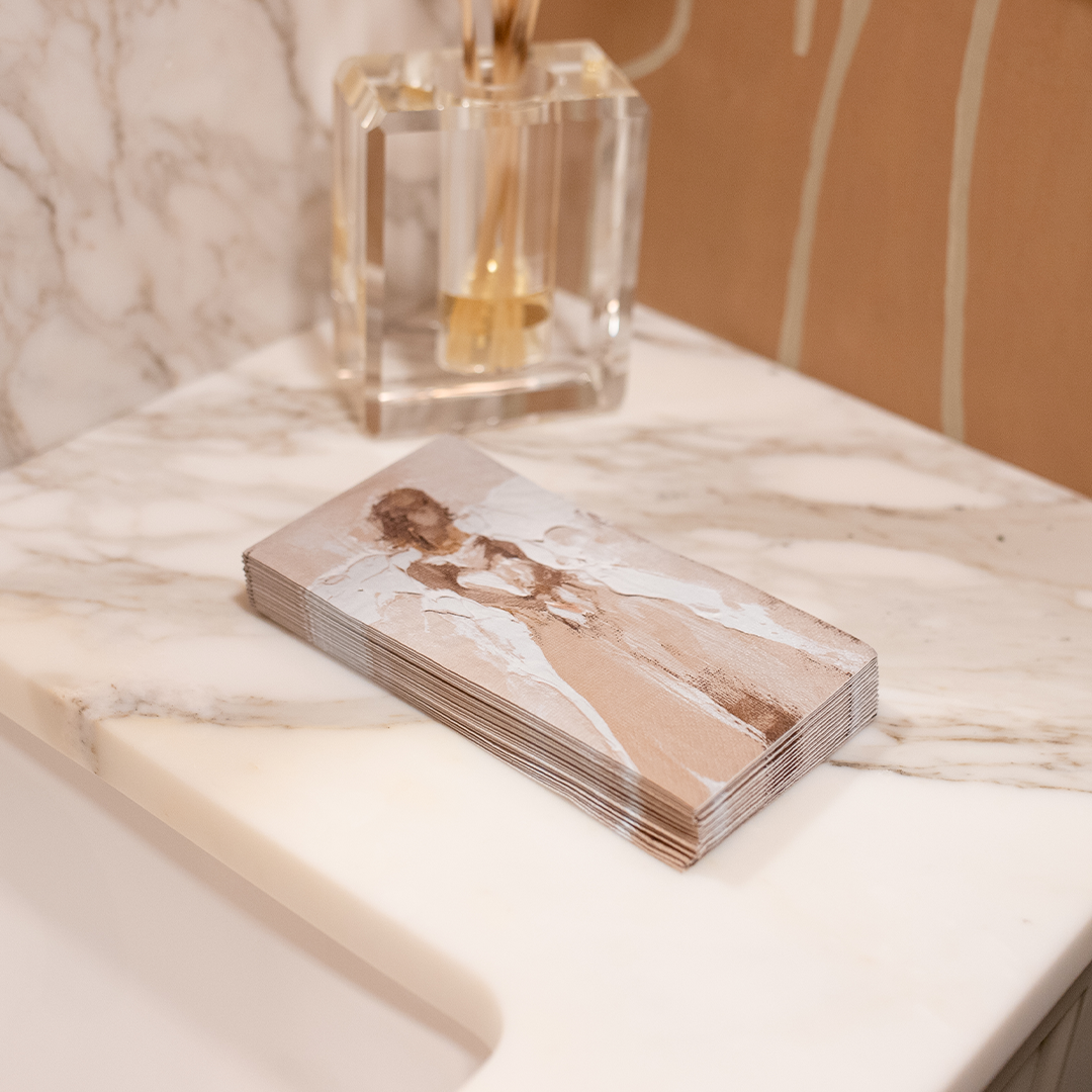 Anne Neilson Home's triple-ply napkins feature a beautiful ethereal Angel and are sure to elevate any occasion. These are an easy grab-and-go gift for the hostess or a fun addition to your last-minute dinner party. The Grace Guest Towels are designed to fit perfectly into our Grace Tray.