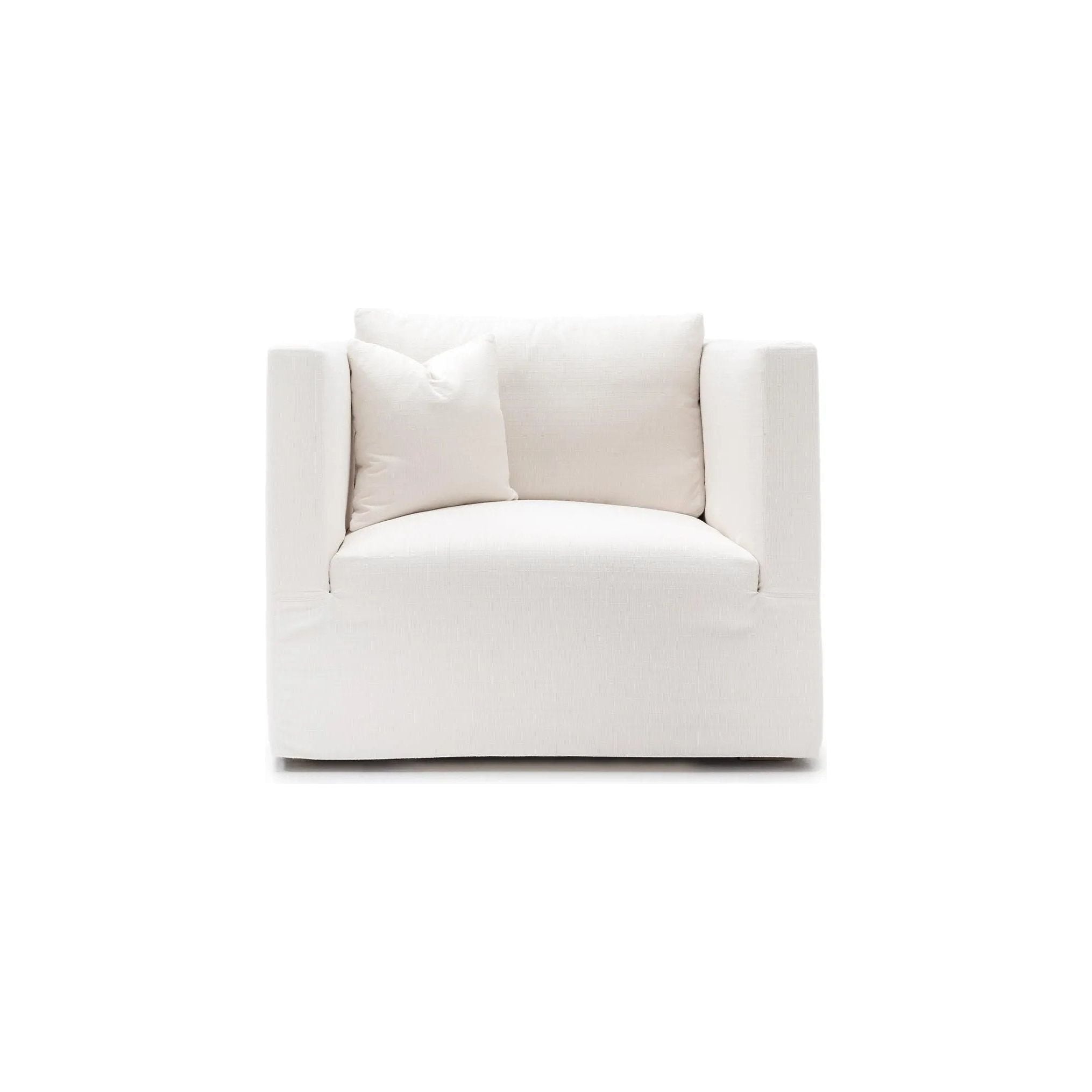 The Lawrence Chair boasts a sleek, contemporary design with clean lines and an abundance of plush arm, back, and toss pillows for unparalleled comfort. Available upholstered with a loose seat cushion or slipcovered with a semi attached tight seat.