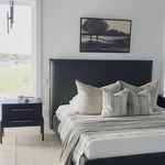 Upholstered from a soft, linen blend fabric, the Luzon Bed is for those who dream of their next beach destination. Its padded tall headboard and solid pine-poplar mix wood frame make it comfy and reliable, while its timeless design and neutral tone showcase a classic, utilitarian look. Amethyst Home provides interior design, new home construction design consulting, vintage area rugs, and lighting in the Newport Beach metro area.