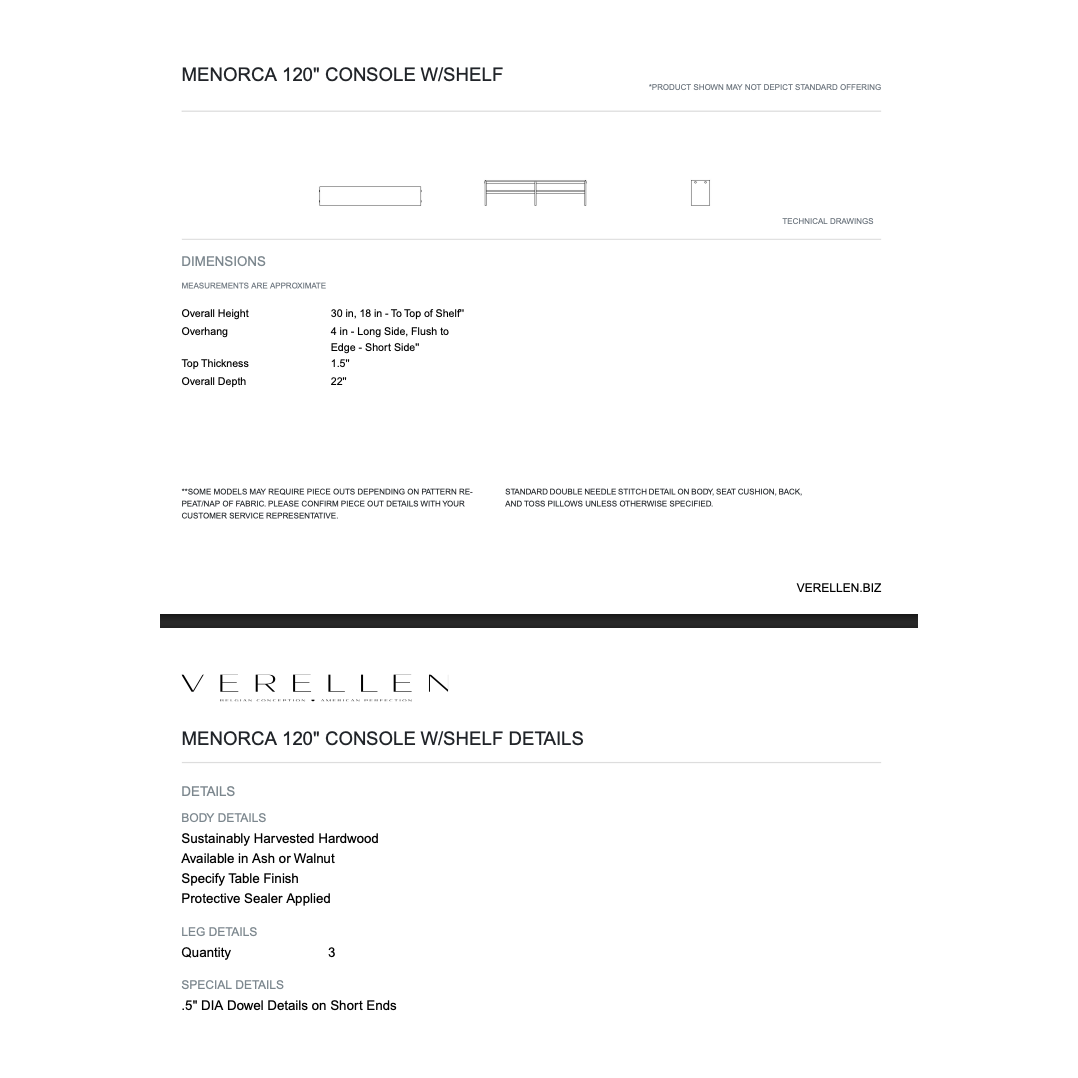 Menorca 120" W/Shelf Console Table By Verellen