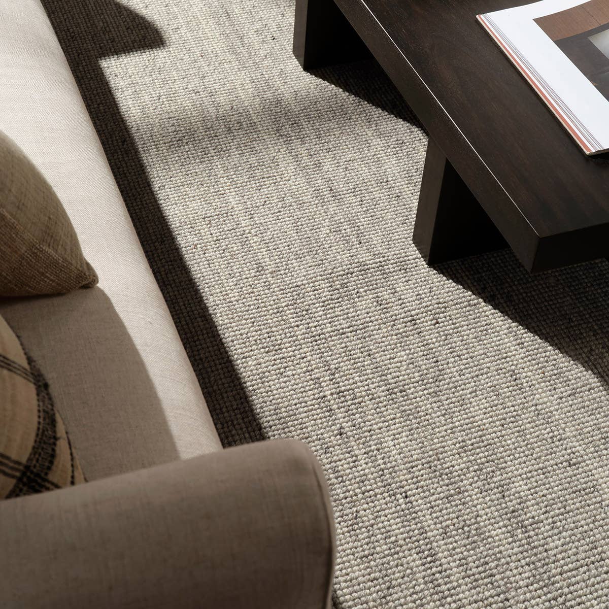 Anchor your space with the rich texture of Mere. 100% wool is handspun with generous loops to offer distinct dimension in gray hues. Easy to design around, it's a flawless fit for practically any room and interior style.