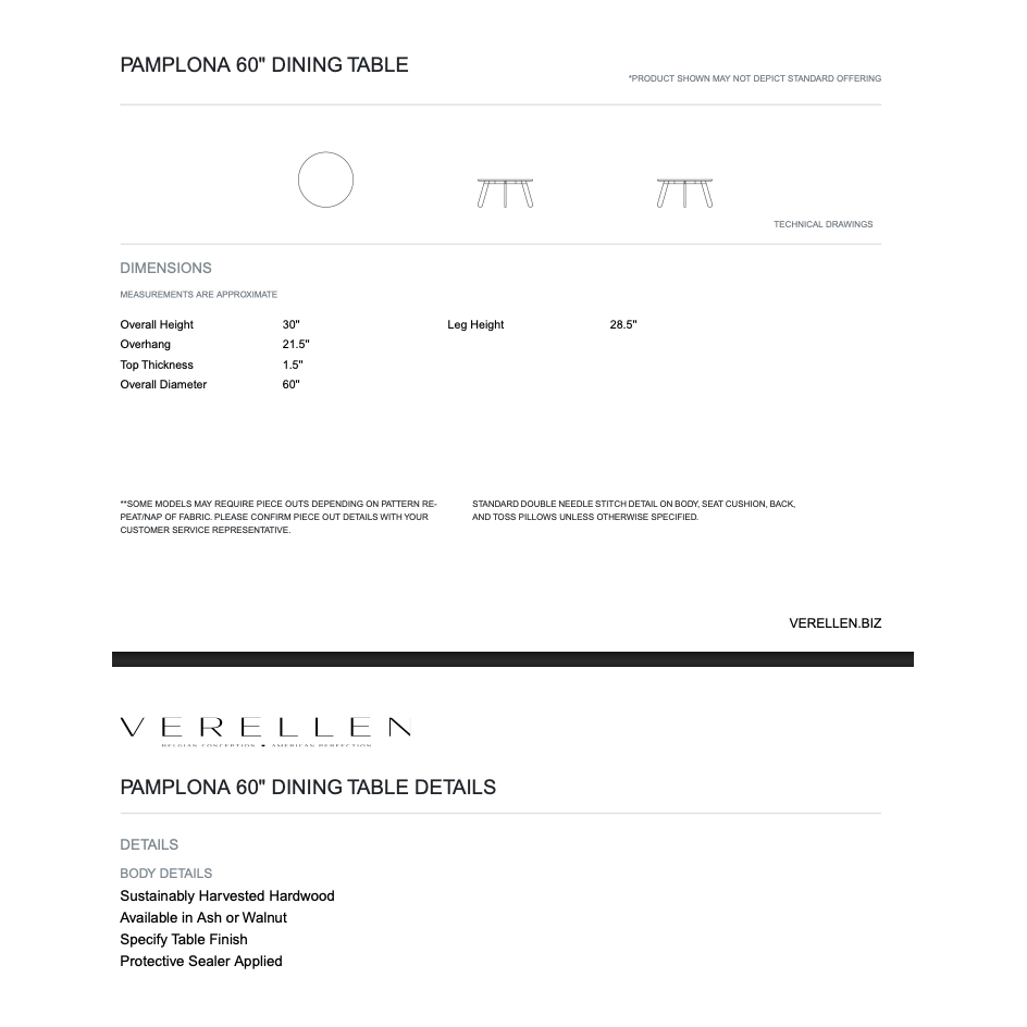 Pamplona 60" Round Dining Table By Verellen