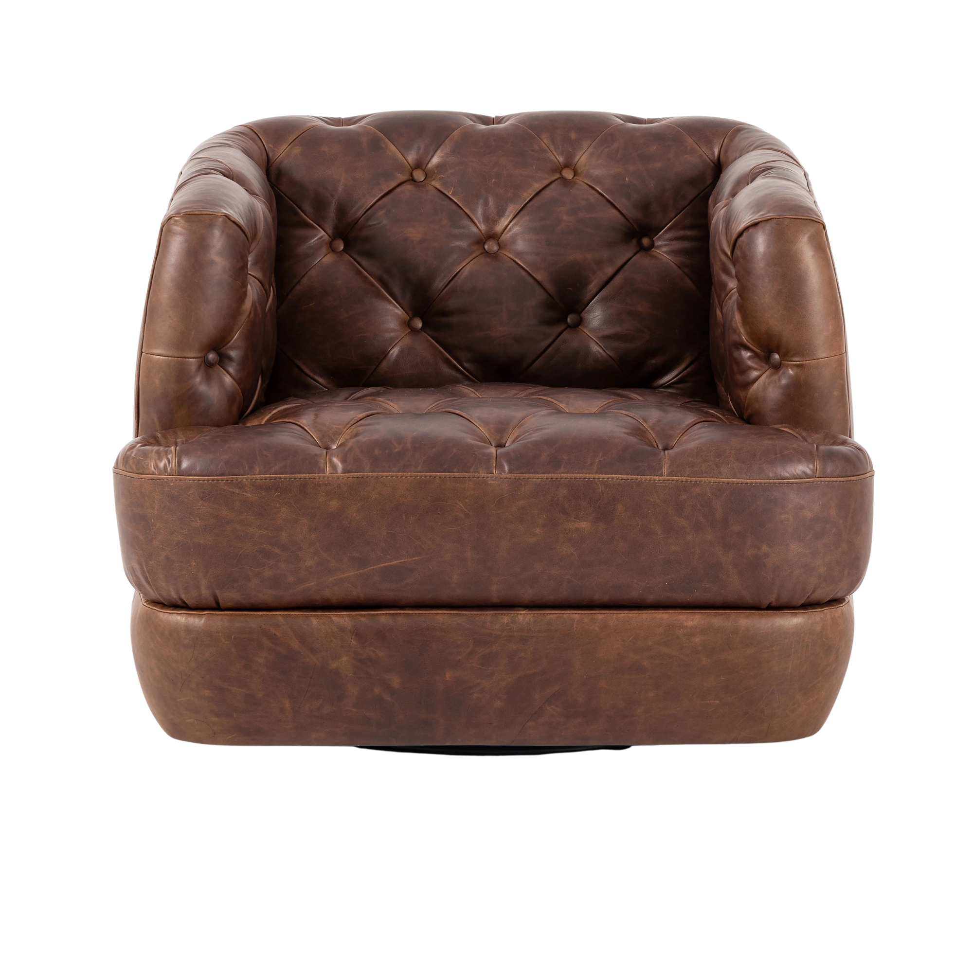 Featuring Paul Raleigh Cigar Swivel Chair by Four Hands at Amethyst Home. Old English-inspired top-grain leather is finished with a soft hand for a vintage, lived-in look on this traditionally inspired chair. Handcrafted in Italy, the richness of this distinctive, full-bodied leather develops an even-richer patina over time. Button tufting texturizes a comfortably curved back and . Amethyst Home provides interior design, new construction, custom furniture, and area rugs in the Monterey metro area.