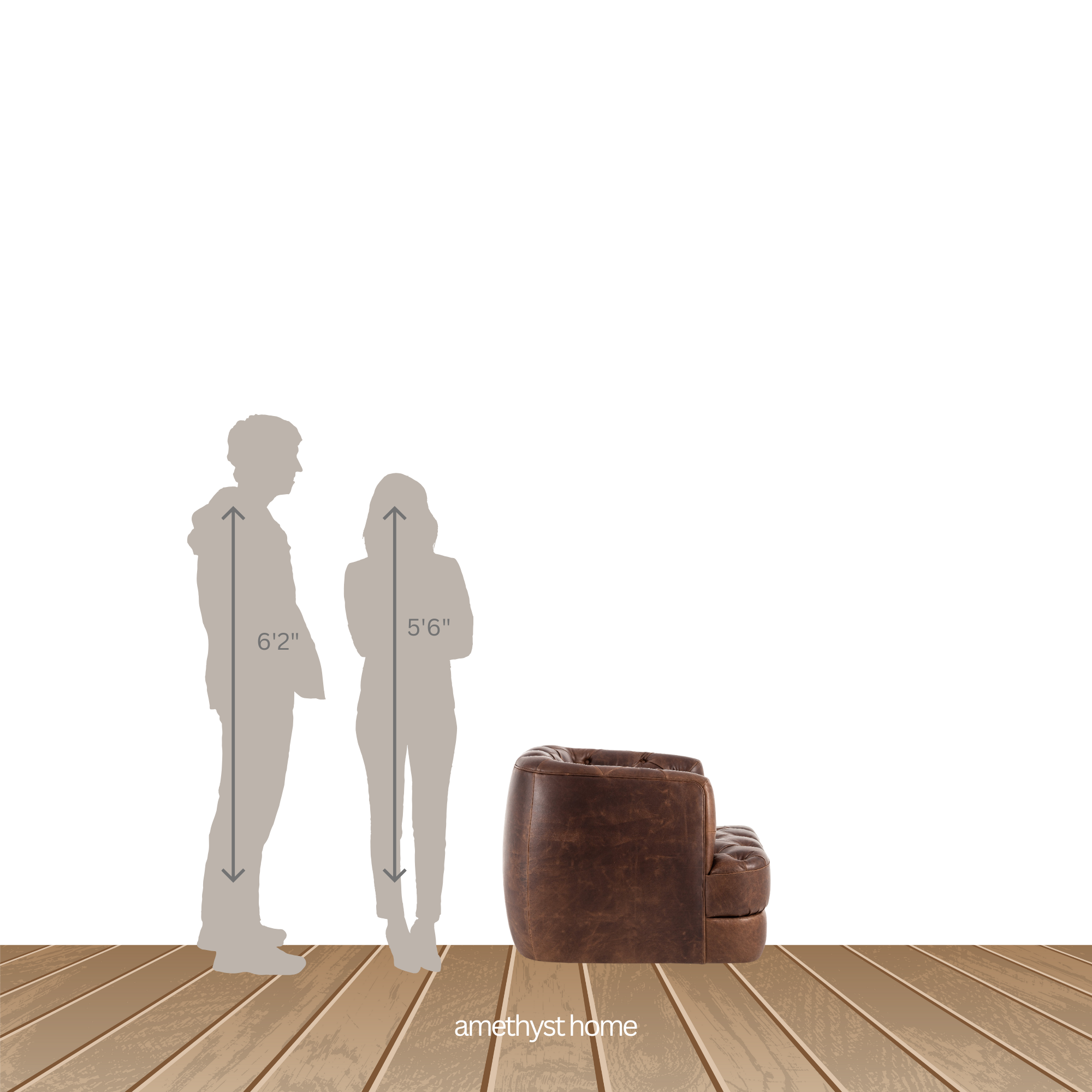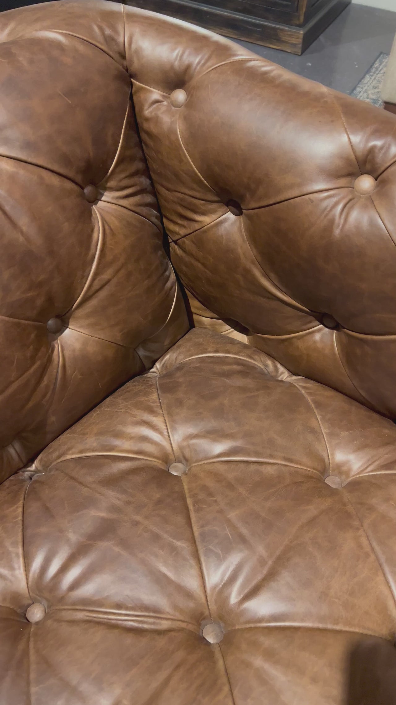 Old English-inspired top-grain leather is finished with a soft hand for a vintage, lived-in look on this traditionally inspired chair. Handcrafted in Italy, the richness of this distinctive, full-bodied leather develops an even-richer patina over time. Button tufting texturizes a comfortably curved back and sides, while a 360-degree swivel modernizes the whole look.