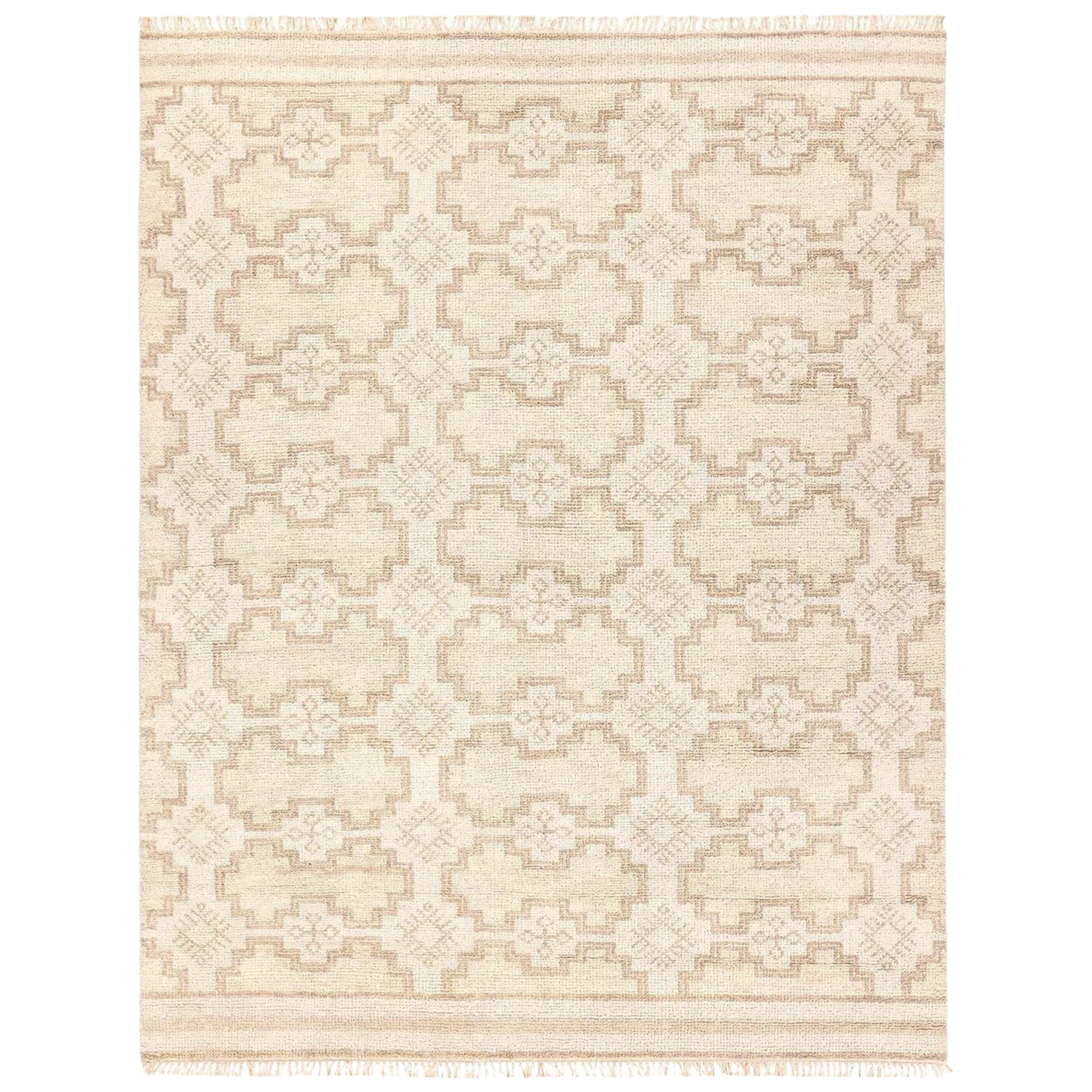 The Sevak collection skillfully emulates vintage designs with the simplified and tonal twist of modernity mixed into the motifs. These Kars-inspired patterns have the uncanny ability to both ground a space with inviting and comfortable appeal, while also lending the perfect amount of interest to a room. The Elmast design showcases a geometric tile pattern with a border and fringe to match. The beige and cream colorway establishes the global, vintage style. Naturally stain-resistant, the 100% wool pile is soft underfoot and easy to clean while maintaining effortless sophistication. Obtaining both a Nest Seal and RugMark certification, this global area rug brings ethical, handmade luxury to the home.