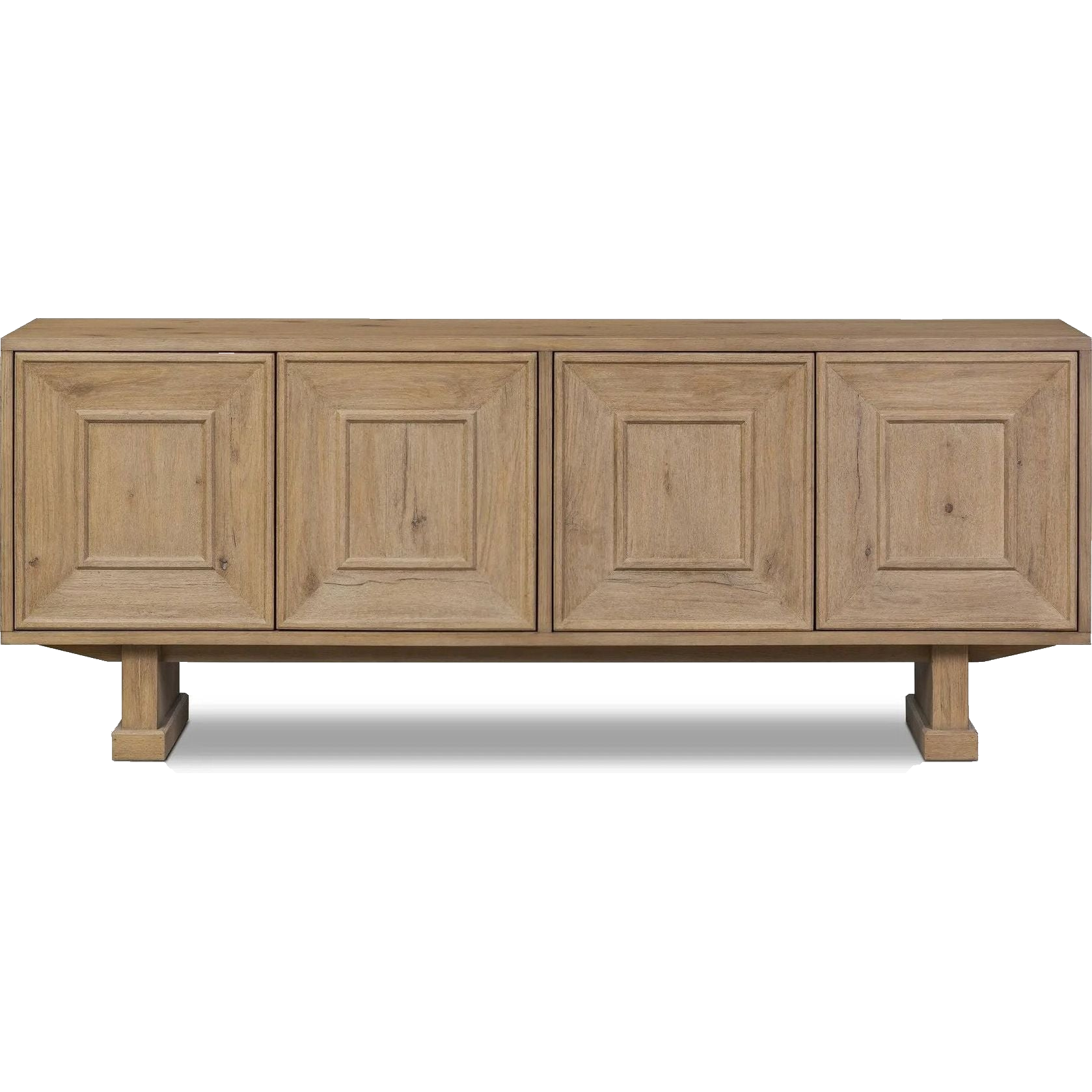Store favorite dinnerware, table linens and more in this modernized Deco sideboard, with inverted chamfered framing and molding around the doors. Made from solid oak with a light, drifted finish and ski-style legs that elevate the whole piece Amethyst Home provides interior design, new home construction design consulting, vintage area rugs, and lighting in the Laguna Beach metro area.