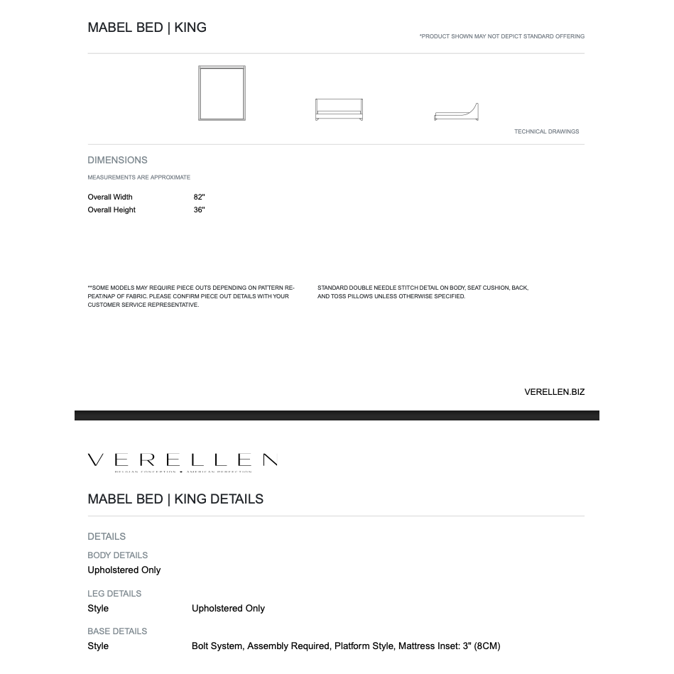 About The Mabel King Bed By Verellen & Dimensions