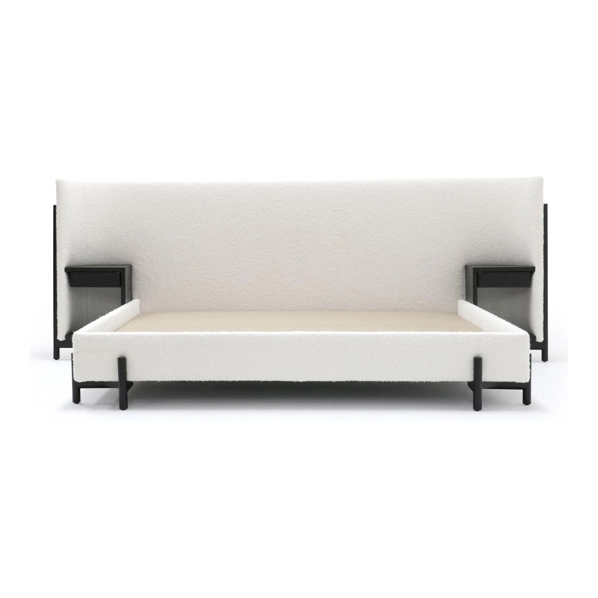 A blend of luxury and practicality, the Sullivan Bed features an expansive, cushioned headboard with integrated shelves, seamlessly marrying stylish elegance with functional sophistication.