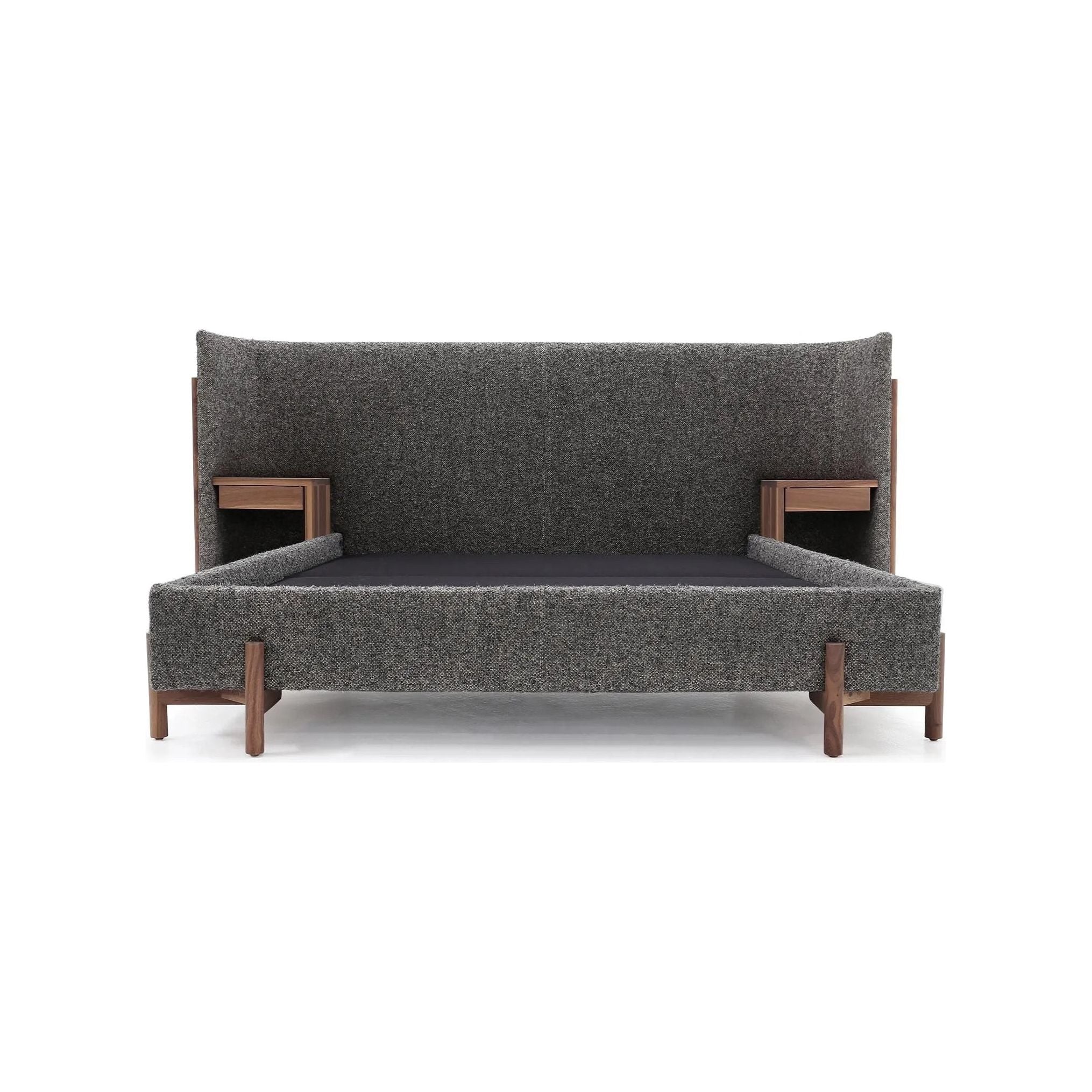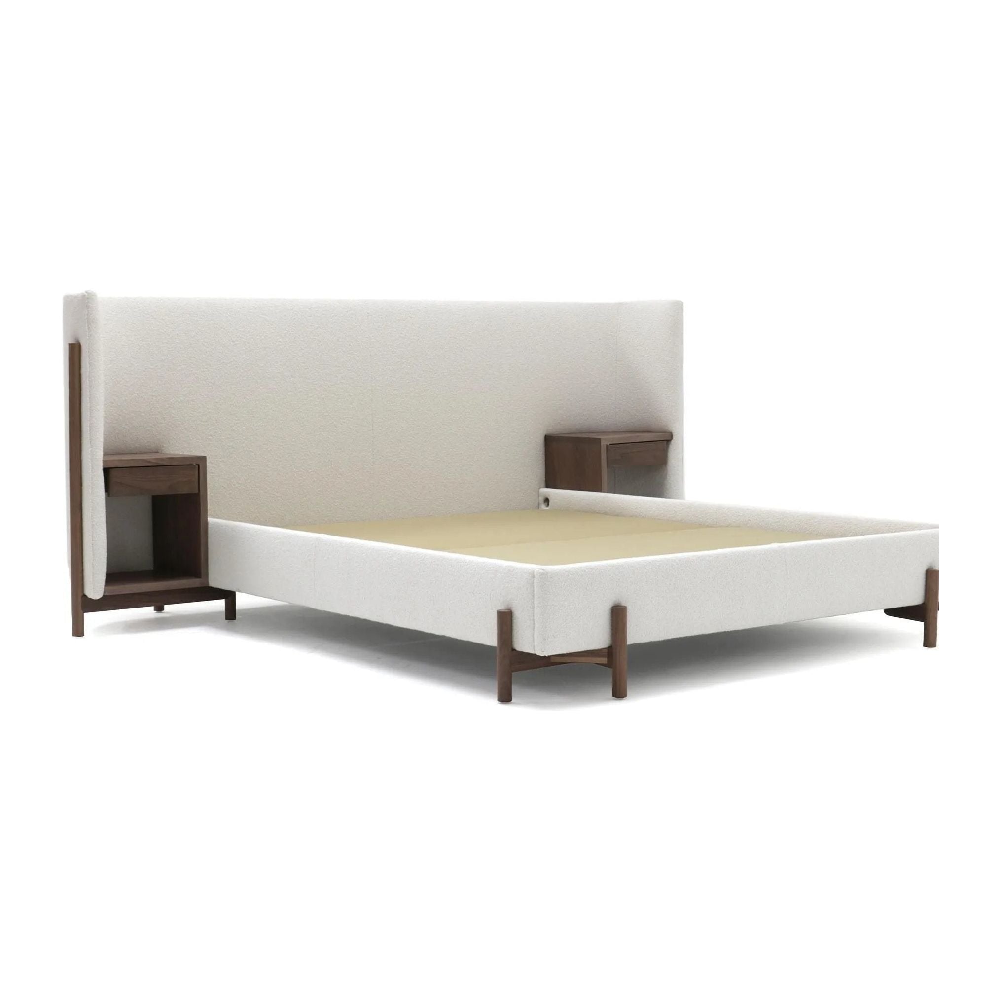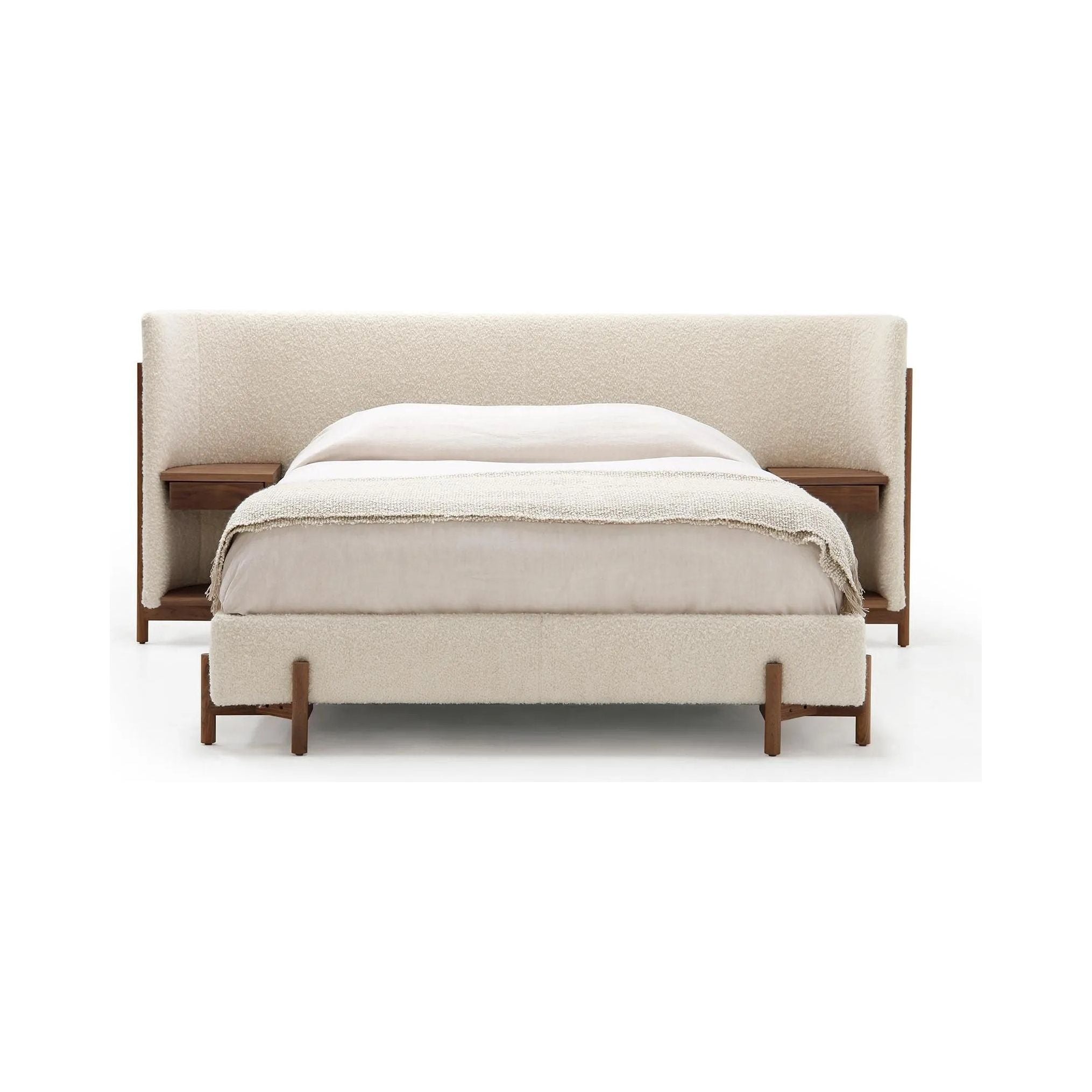 A blend of luxury and practicality, the Sullivan Bed features an expansive, cushioned headboard with integrated shelves, seamlessly marrying stylish elegance with functional sophistication.